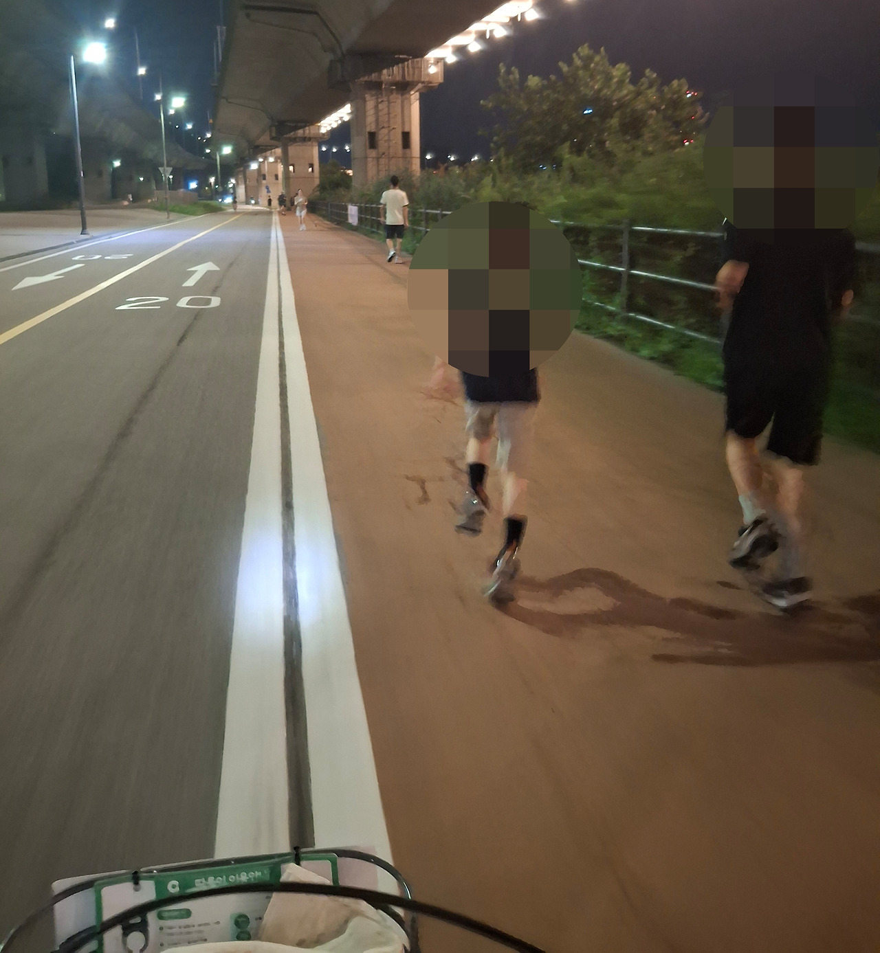 작은 아이는 인도로, 저는 자전거길로 가다보니 아이 지근거리에서 챙겨줄 사람은 오로지 자기 자신뿐인 시간.체력의 한계 속에서 걷겠다는 결정도 뛰겠다는 결정도 오롯이 스스로의 몫입니다.