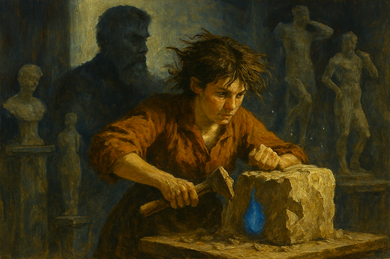 그녀는 본래 병화(丙火)와 같은 여자였다. 태양처럼 강렬하고, 숨김없이 자신을 드러내며, 세상을 자신의 빛으로 장악해야만 직성이 풀리는 존재였다. 로댕의 작업실은 그녀에게 있어 거대한 용광로였다. 흙을 만지고 돌을 깎을 때, 그녀의 손끝에서는 문명의 예의범절을 비웃는 원초적인 에너지가 뿜어져 나왔다. 그것은 '지옥의 문'을 함께 조각하며 나누었던 육체적 탐닉이자, 예술적 교감이라는 이름의 위험한 불장난이었다.