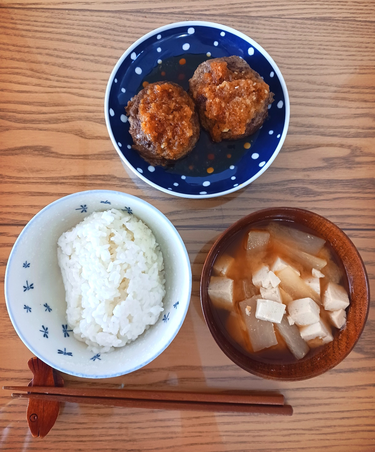 어릴 때 자주 가던 가게에서 먹은 함바그를 재현해 봤다.