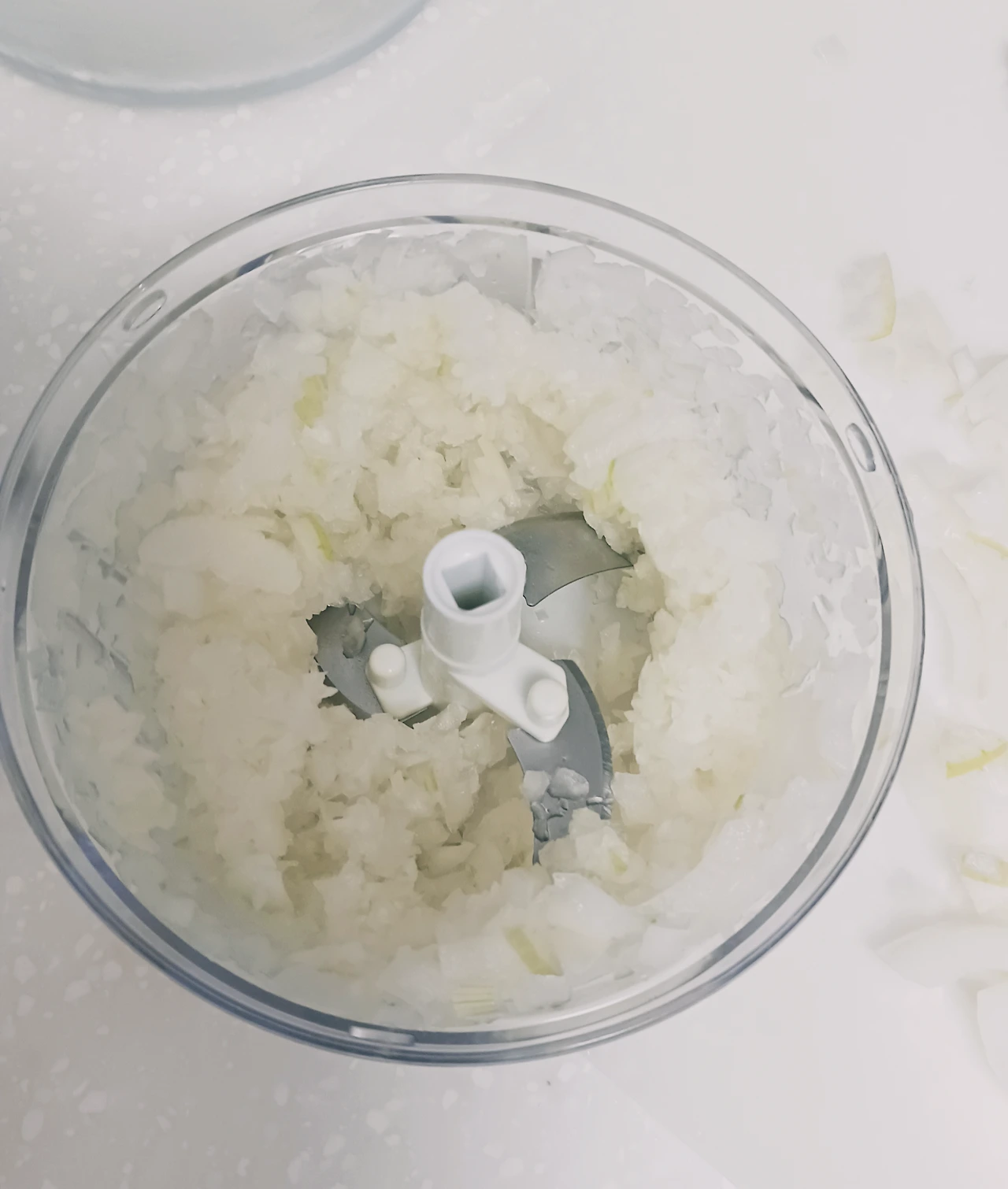 먼저 재료를 손질하는데 여기서 양파를 아주 작게 갈아준다. 그 후 볶아서 익인 상태로 반죽에 넣는 레시피도 있지만 나는 솔직히 이걸 해도 안 해도 그만이라 생각한다. 둘 다 해 봤지만 별 차이는 없었다.