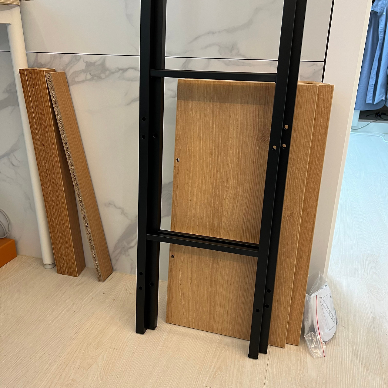 쿠팡으로 주문한 5단짜리 책장이 하루 만에 도착했다. 어차피 언젠가는 조립해야 할 일이니 미루지 않고 바로 조립하기 시작했다. (대견)