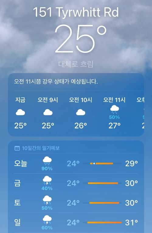아침에 일어났더니 오늘 싱가포르에 비가 내릴 확률이 90% 라고 한다.