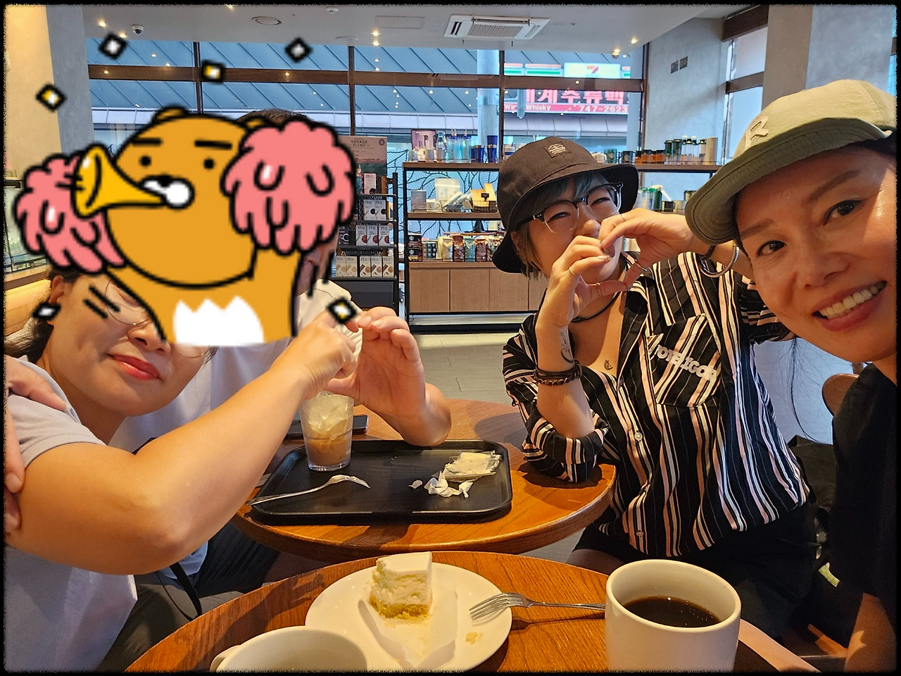 나와 은아님은 더운 날이지만 “그래도 커피는 따뜻한 아메리카노지”했고, 병환님은 달달구리 음료를 주문했다. 세연님이 붙여준 ‘베이비’라는 별명을 이해할 수 있을 것 같아 웃음이 났다. 그리고 케이크 한 조각까지, 우린 살이 찔 수밖에 없다며 오래된 친구처럼 깔깔거렸다.