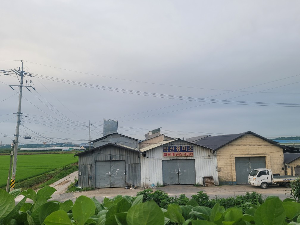 신세계 프리미엄 아울렛을 지나 넓은 도로 끝자락 계단으로 내려가면 본격적인 걷기가 시작된다. 파주의 본모습이 이런 모습이지 않았을까 싶은 푸른 논이 쭉 펼쳐진 공릉천 길 위에는 30년 된 약산 정미소가 자리 잡고 있다. 이곳 약산 정미소는 법흥리에 터를 잡고 농사를 업으로 지낸 친구들이 함께 운영하고 있다. 다섯 명 청춘이 이제 칠십을 바라보는 나이가 되었다고 하니 인근에서는 꽤 유명한 터주 명소다.