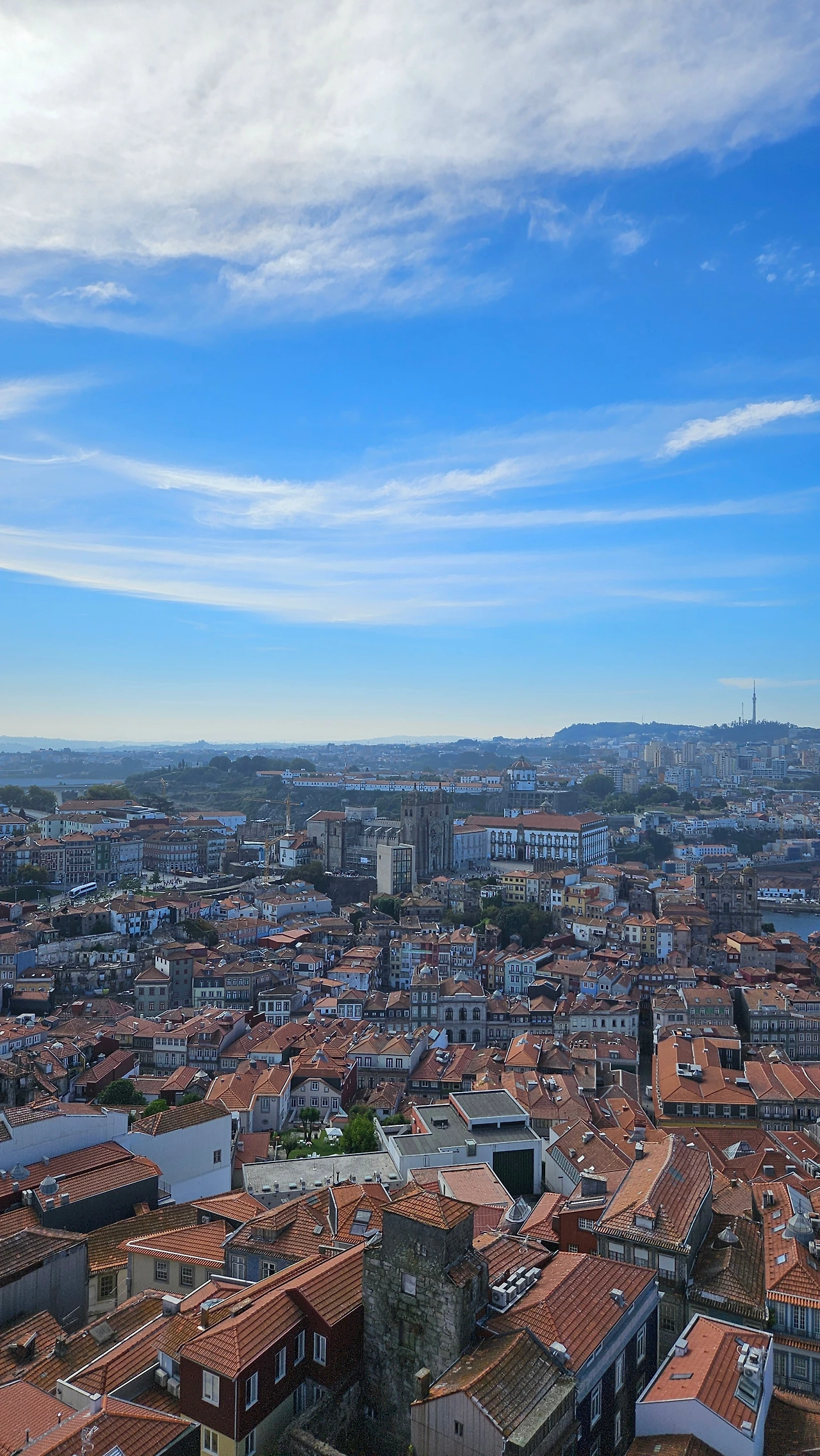 숨이 턱 끝까지 차오를 때쯤 꼭대기에 닿았다. 360도 파노라마처럼 펼쳐진 포르투의 풍경이 눈을 가득 채웠다. 숨 고르기를 하며 벅찬 마음으로 포루투와 인사를 나누었다. 다닥다닥 붙은 주황색 지붕들 사이로 도우강이 흐르고, 저 멀리 대서양(Atlântico)까지 닿은 시선에 마음을 열었다.