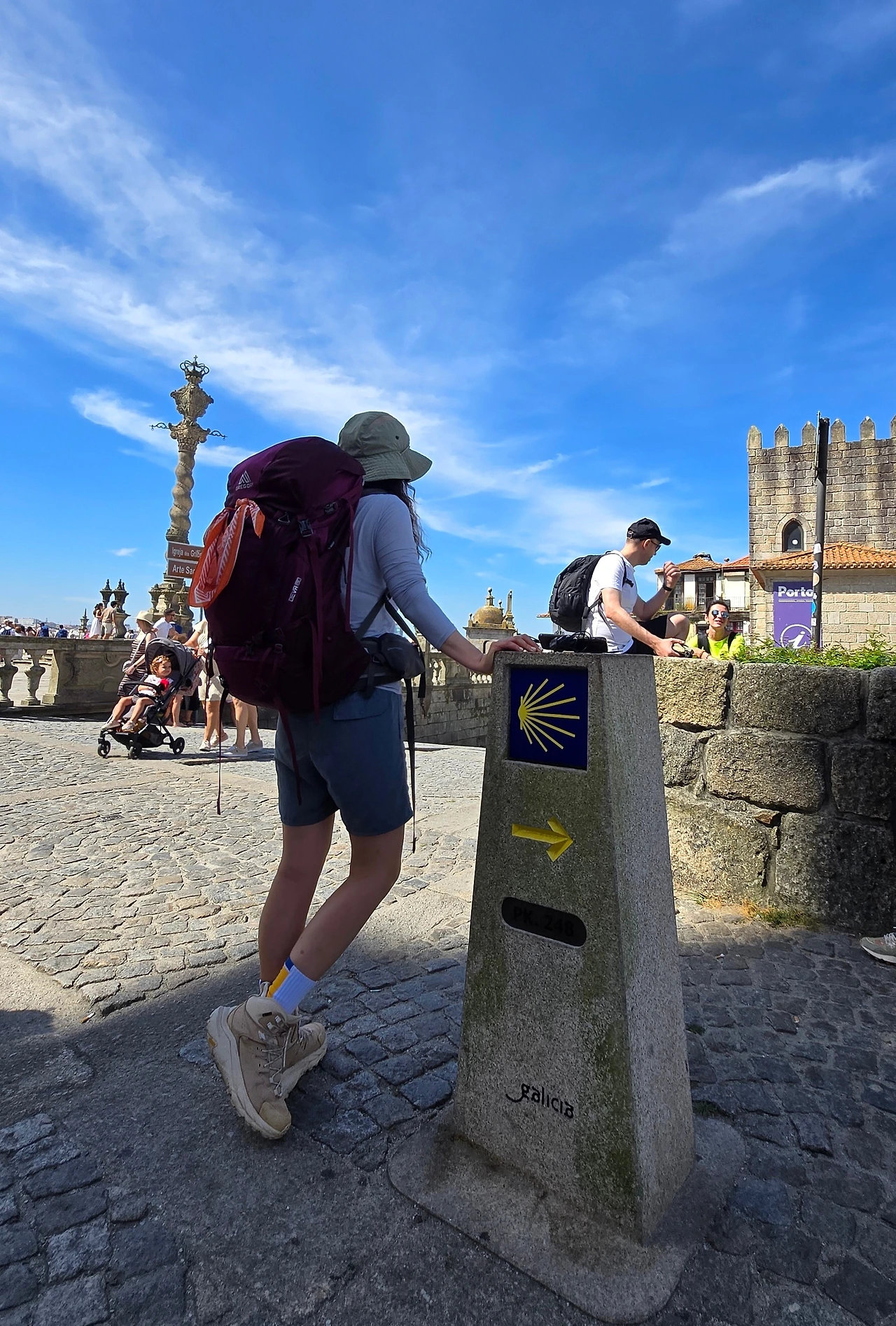 웅장한 성당을 배경 삼아 사진을 찍는 관광객, 출발전 기도를 올리려는 순례자들까지 더해져 입장 줄은 좀처럼 줄어들 기미가 보이지 않았다. 잠시 조용히 머물고 싶은 마음과는 달리 북적이는 분위기에 마음이 분주해졌다. 아쉬운 마음을 뒤로하고 성당 앞 표지석에서 인증사진을 남기고, 출발을 알리는 첫번째 세요를 찍었다.