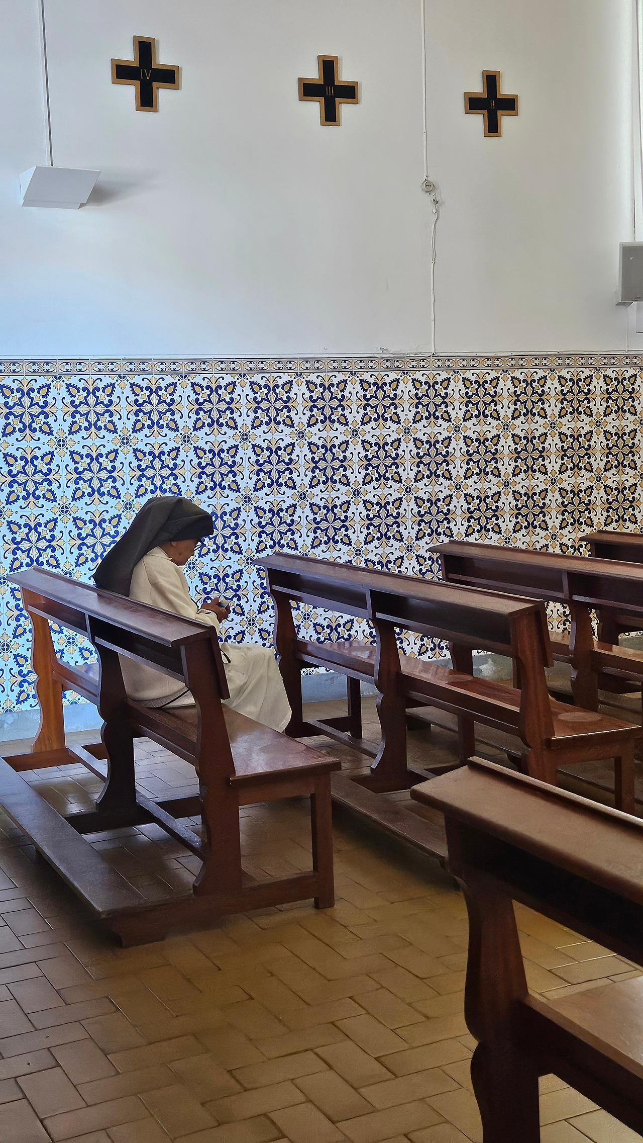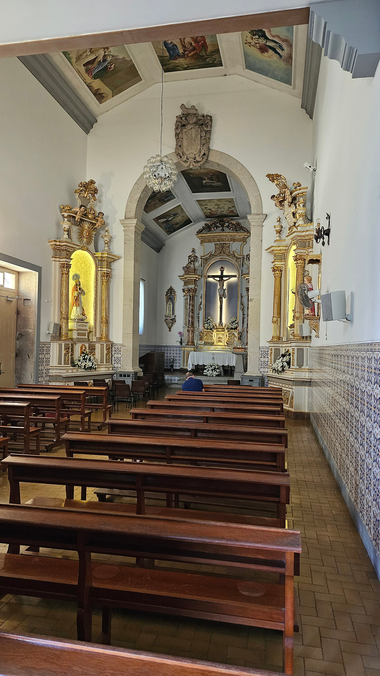 빌라 프라야 드 앙쿠라(Vila Praia de Âncora)의 좁은 골목을 지나 광장에 하얀 벽과 종답이 햇빛을 받아 반짝였다. 보아 보난사 성모 예배당(Capela Nossa Senhora da Boa Bonança) 문을 열고 조심스레 들어서니 수녀님 한 분이 조용히 앉아 기도를 드리고 계셨다. 금빛 제단과 푸른 타일 장식이 은은하게 빛났다. 고요하게 흐르는 정적과 평온함이 나의 마음까지 차분하게 해 주었다.