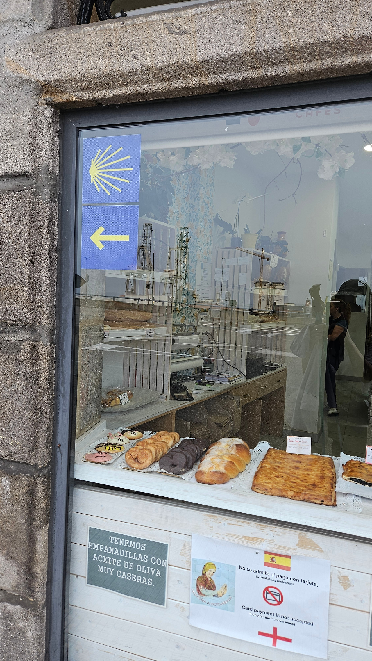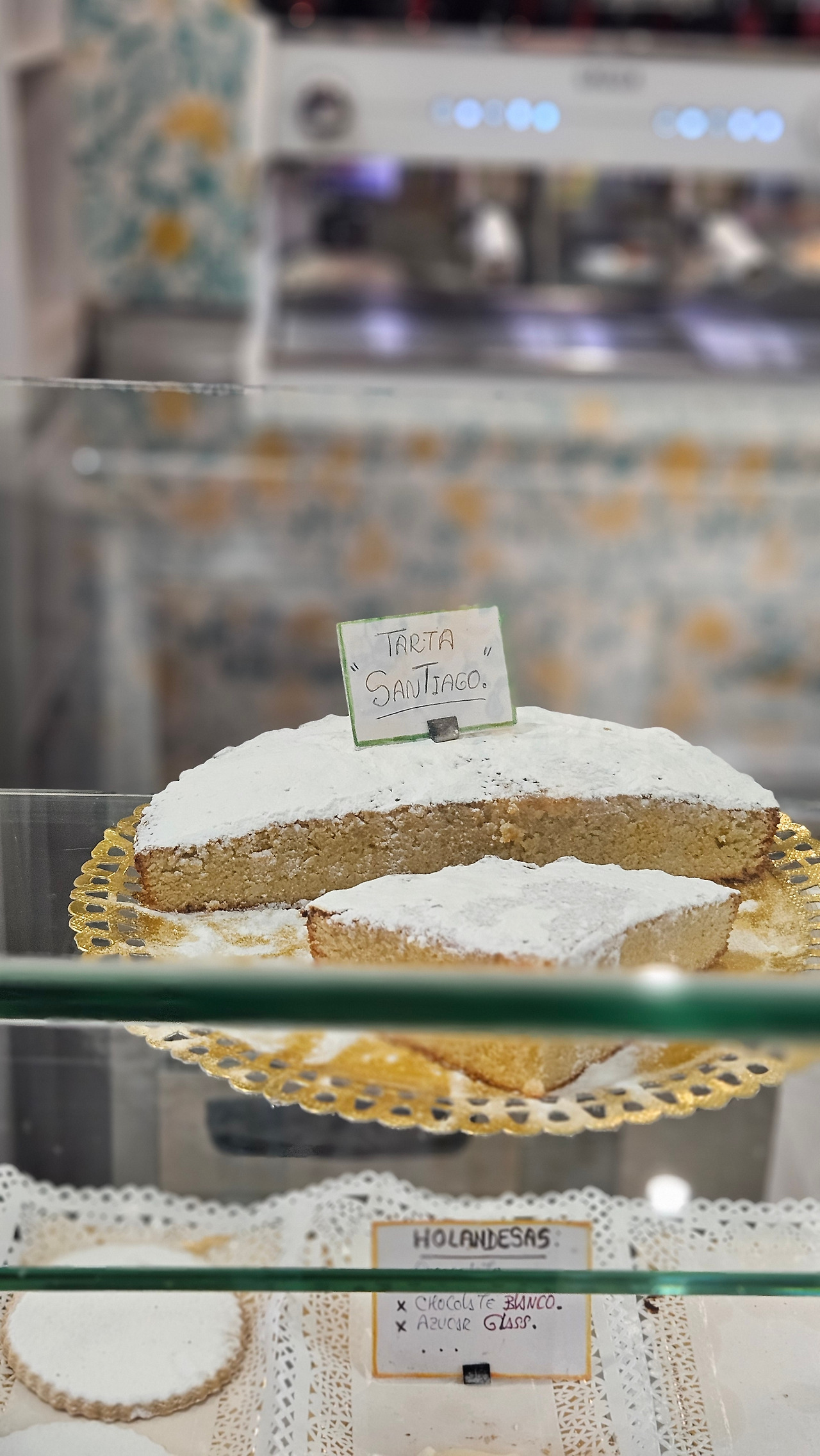 햇살이 쏟아지는 아침, 도시의 활기를 뒤로하고 걷기 시작한 지 얼마나 됐다고 길가의 작은 카페 문 앞에서 발걸음이 자동으로 멈췄졌다. 창문에 붙은 조가비와 화살표가 나를 부르는 것 같아 그냥 지나칠 수 없었다. 갓 구운 빵 냄새가 코를 자꾸 간질였다. 진열대를 바라보다 눈길을 끄는 이름을 발견했다. 산티아고 케이크(Tarta Santiago)’라니, 이름만으로 마음이 사르르 녹았다. 길에서 만나는 특별한 달콤함은 마치 나를 위해 준비된 선물 같았다. 아몬드 가루로 만든 케이크 한 조각을 커피와 함께 맛보았다. 고소하면서 촉촉한 풍미가 입안 가득 번지자, 지난 며칠의 고단함이 스르르 풀렸다. 케이크 위에 뿌려진 슈가파우더가 단맛을 한층 끌어올렸다. 순례길에서 만난 작은 달콤함은, 길이 보내준 위로의 편지처럼 걸음을 즐겁게 하는 마법 같은 힘이 있었다.