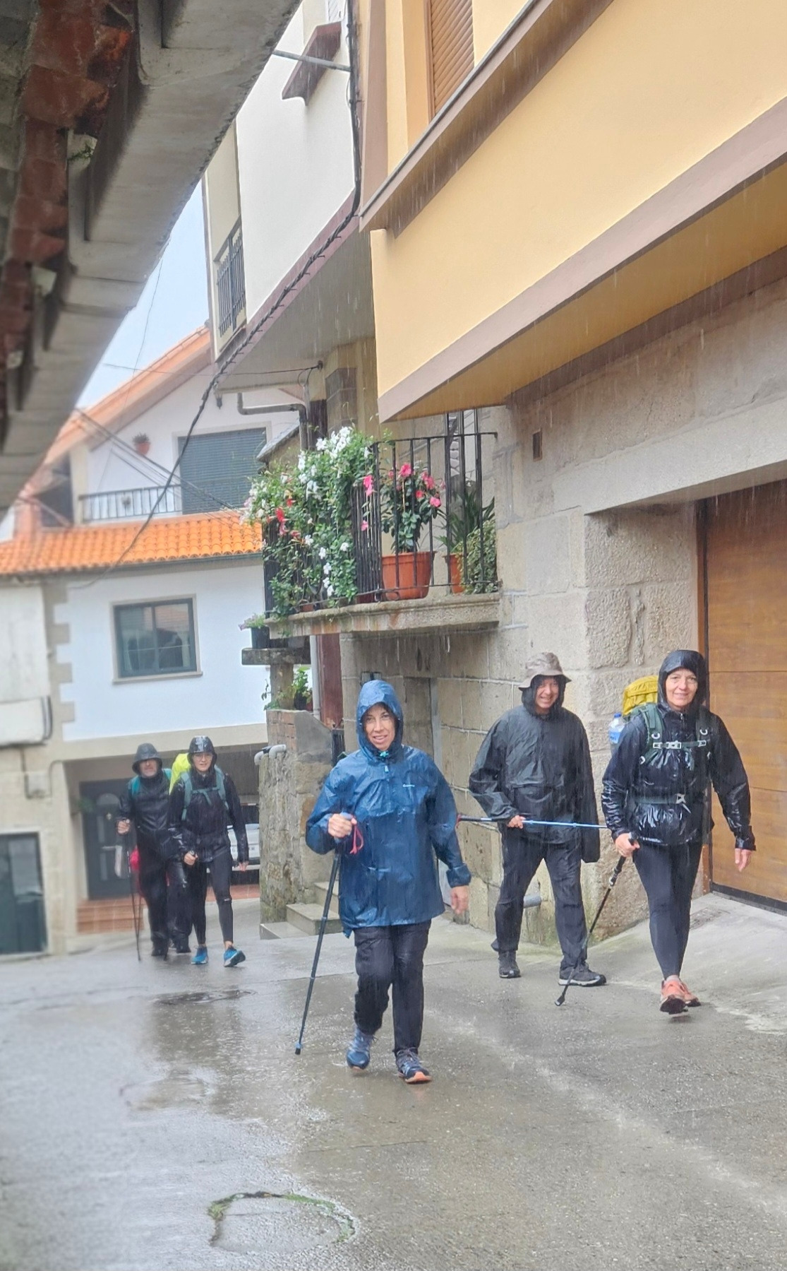 나는 빗줄기를 바라보며 느긋하게 걸음을 멈췄다. 나와 같은 마음을 가진 순례자들도 각자 한 곳에 앉아 비가 잦아들기를 기다리며 숨을 고르고 있었다. 서로의 시선은 마주치지 않아도 같은 마음으로 같은 풍경을 공유하며 잠시 머무는 듯했다. 길 위의 공기가 잔잔하고 따뜻하게 느껴졌다.