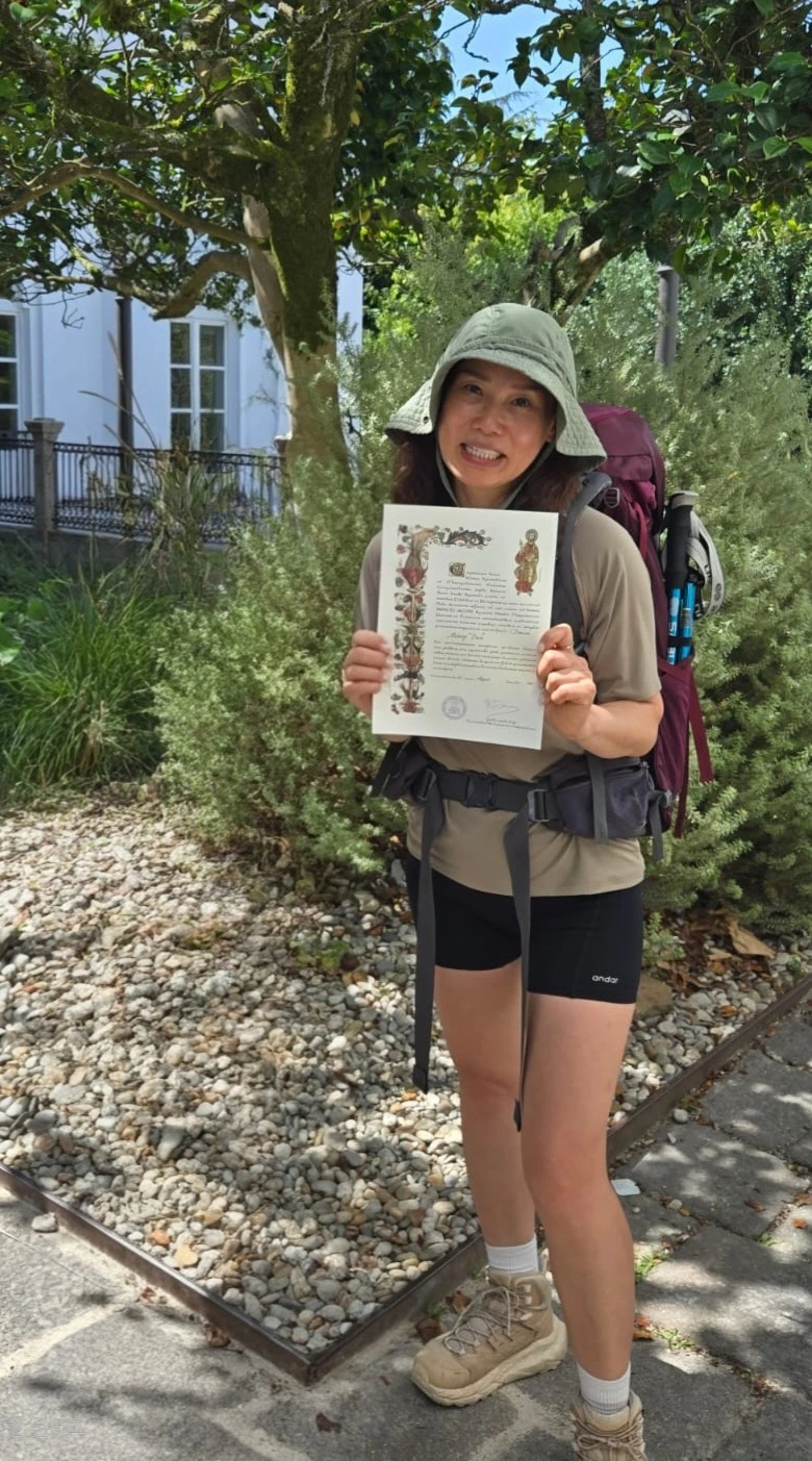 산티아고 버스터미널에 도착해 대성당으로 향했다. 산티아고 대성당의 웅장한 첨탑이 눈앞에 나타나는 순간, 길의 끝이자 또 다른 시작이 내 안에서 조용히 숨 쉬었다. 순례자 사무실에서 인증서를 받았다. 내 발걸음을 증명하는 작은 종이 한 장이지만, 11일 동안 걸어온 시간과 마음, 모든 순간이 담겨 있었다. 인증서를 손에 쥐고 대성당 앞으로 걸어갔다. 수많은 순례자의 발걸음이 모여 만든 광장에서, 나 역시 여정을 마친 한 사람으로 서 있었다. 파란 햇살 속에서 여유롭게 웃는 사람들의 모습이 보기 좋았다. 순례를 마치고 저마다의 설렘과 평온이 스며 있었다.
