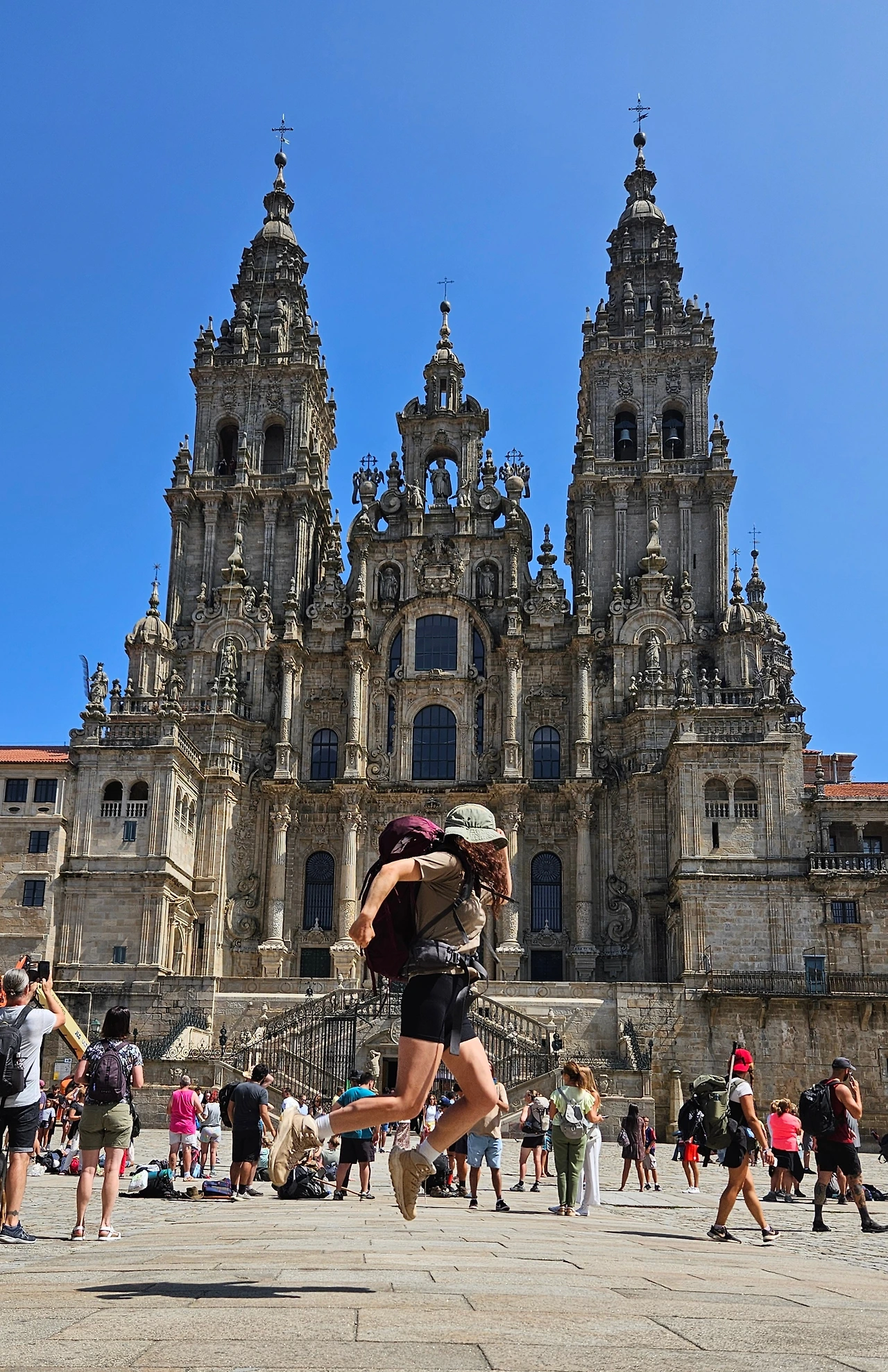 들뜬 마음을 모아 배낭을 메고, 카메라 앞에서 점프샷을 찍어 가족들에게 보냈다. 멀리 떨어진 곳에서도 함께한 순간을 나누고 싶은 마음이었다. 곧이어 영상통화를 켰다. 대성당에서 울리는 종소리가 스피커를 통해 가족에게 전해졌다. 눈물이 흘렀다. 멀리 있어도 길 위에서 함께 울고 웃는 것만 같은 순간. 순례길의 끝에서 사랑하는 가족들과 마음을 나누었다.