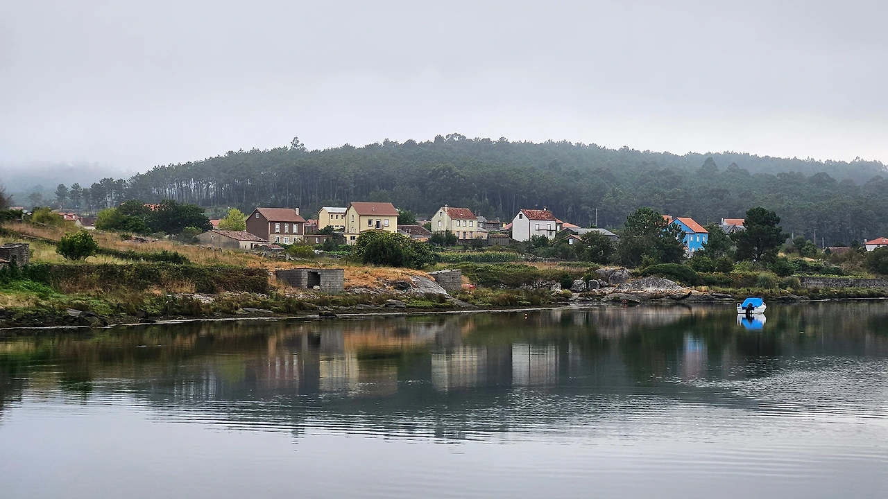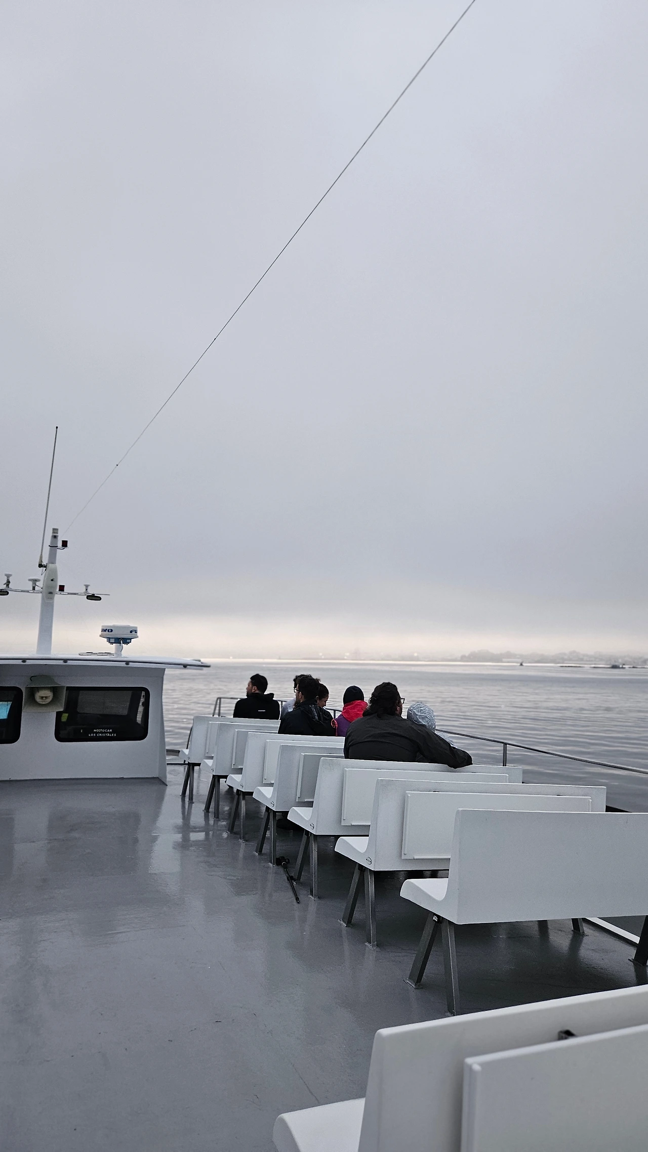 구름이 낮게 깔린 아침, 순례자들이 하나둘씩 모여든 빌라노바 데 아루오사 선착장은 아직 어둠 속에 잠겨 있었다. 난간을 잡고 차가운 공기를 깊게 들이마시며 배에 올랐다, 숨을 고르며 물결 위로 스며드는 구름 빛을 바라보니, 마음이 조금씩 잔잔해졌다.