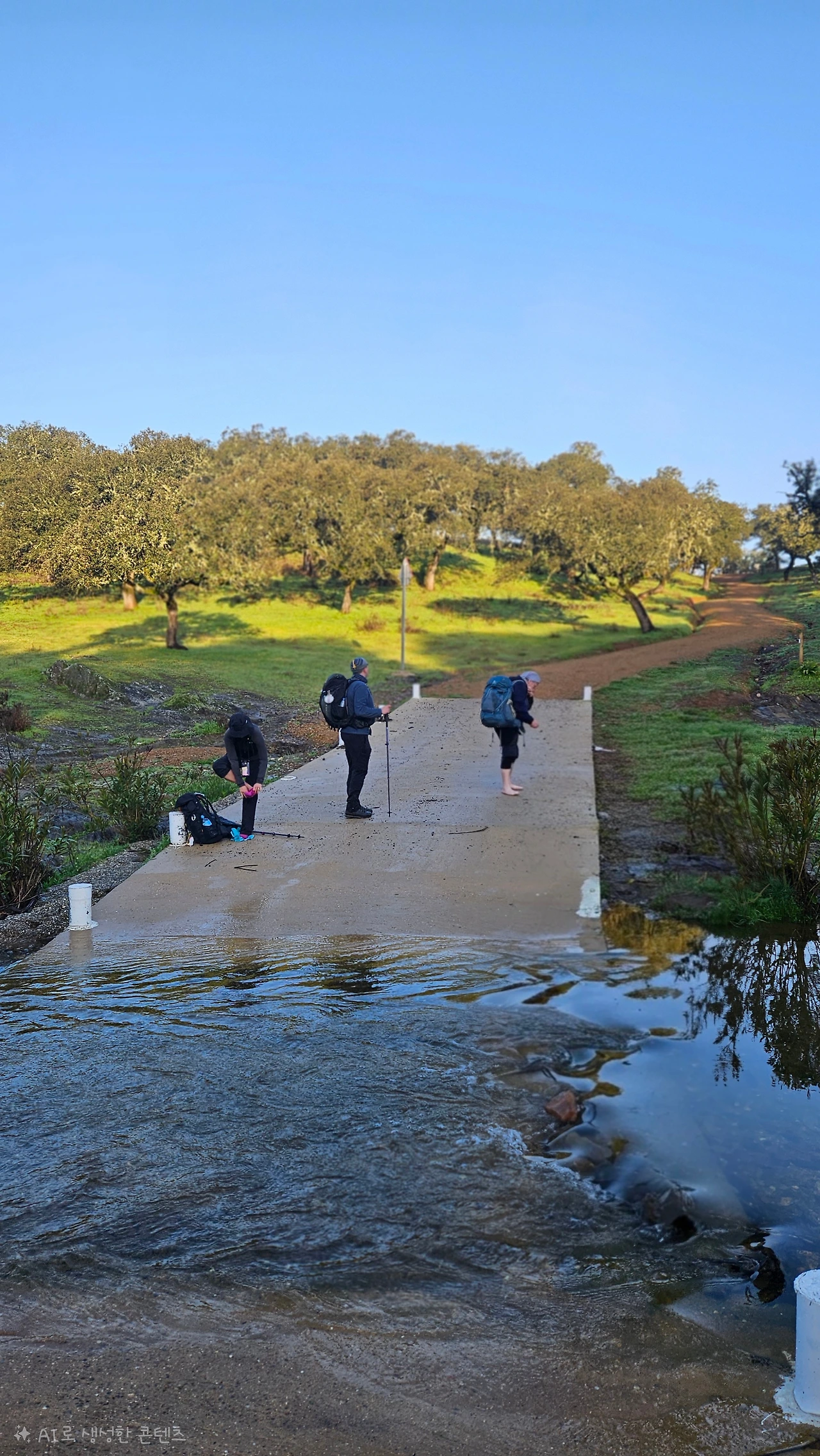 차가운 물이 발끝을 감싸는 순간 걸음을 늦추지 않을 수 없었다. 그때 알았다. 이 길은 서두르는 사람을 받아주지 않는다는 것을, 천천히 물을 건넜다.