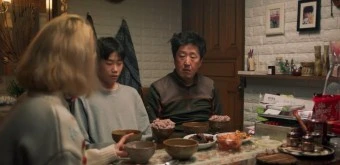 이 영화의 클라이맥스는 아버지의 생일을 맞아 모두 고향 식당에 모였을 때다. 독실한 기독교 신자인 아버지가 목사를 모시고 모두 식사를 즐기려는 찰나 아버지가 학대했던 망내 아들 진섭이 나타나 아버지와 식탁에 그야말로 오줌을 갈기는 순간이다. 졸지에 생일 축하 자리는 아수라장이 되고 만다. 이런 상황에서 둘째 딸 미연은 동생을 나무라는 것이 아니라 오히려 아버지에게 “우리에게 진심으로 사과를 하라”고 고함을 친다. 그러면서 말한다. ‘어릴 적 기도하기를 내일 아침에 자고 나면 아버지 빼고 우리 모두 죽어있게 해달라고. 죽은 우리 모두는 천국 가서 행복하게 해달라"고 했다고. 그 순간 아버지는 식당 유리벽에 이마를 찧고 피를 흘린다. 아버지의 자해로 인해 식당의 소란은 일순 멈추게 된다. 그렇지만 진정한 사과를 받고 싶었던 딸의 폭발에도 끝내 아버지의 사과는 없었으니 아버지의 자해는 자신의 당황스러움과 자책감을 견딜수 없었던 자괴감의 표출이 아니었을지...이때도 아버지 대신 미안하다고 사과하는 것은 엄마다.