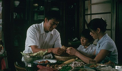 이 영화에서 가족의 울타리 밖에 있는 단 한 사람은 준페이로 인해 목숨을 구한 청년 요시오이다. 10년 동안 준페이의 기일을 찾는 그는 준페이의 가족 앞에서 그는 늘 죄인이다. 그래서인지 긴장한 그의 하는 말은 서투르고 몸에서는 더위와 긴장이 뒤섞여 연신 땀이 흐른다. 제사가 끝날 날 저녁, 그런 그의 모습이 안스러워 료타가 “그가 이제 그만 들러도 되지 않겠느냐”고 하자 희미한 불빛 아래서 뜨개질을 하던 엄마가 미동도 없이 말한다. “그에게 괴로움을 주기 위해 부른거야. 증오할 상대가 없는 만큼 괴로움도 더 할 거야. 그래서 부르는 거야. 일년에 한번 쯤 고통을 준다고 해서 벌 받지는 않을 거야.” 더없이 평범하고 자상한 엄마의 마음에 잠긴 서늘하도록 날선 고통의 응어리를 본 료타는 말문이 막힌다. 슬픔은 꼭 눈물을 꺼내어 울어야 슬픈 것은 아니며, ‘아프다’는 말은 아픔을 표현하기에는 턱없이 부족하다. 사람의 감정이란 누구도 계량화 할 수 없고 개념화 할 수 없는 것이며 가족도 예외는 아니다. 남은 사람이 애쓴다고 앞서 떠난 사람이 잊혀지는 것은 아닐 것이다. 시간이 잊게 하기를, 고통을 옅게 하기를 기다릴 뿐이다.