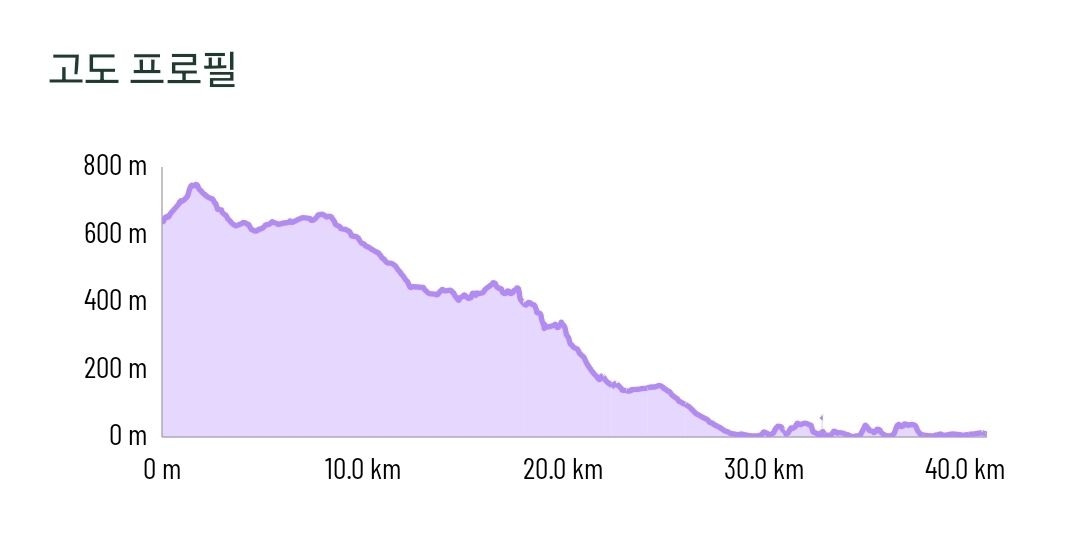 고도 800m에 도달하고 나서야 처음 내리막길을 마주했다. 그나마 다행인 것은 이때부터는 거의 쭉 내리막길이였다