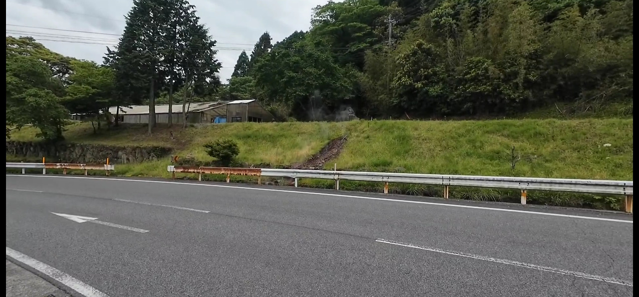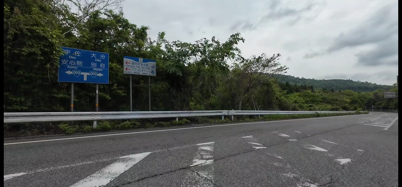산 능선의 중턱에 걸치니 마침내 오이타 방면으로 향하는 도로가 나온다.