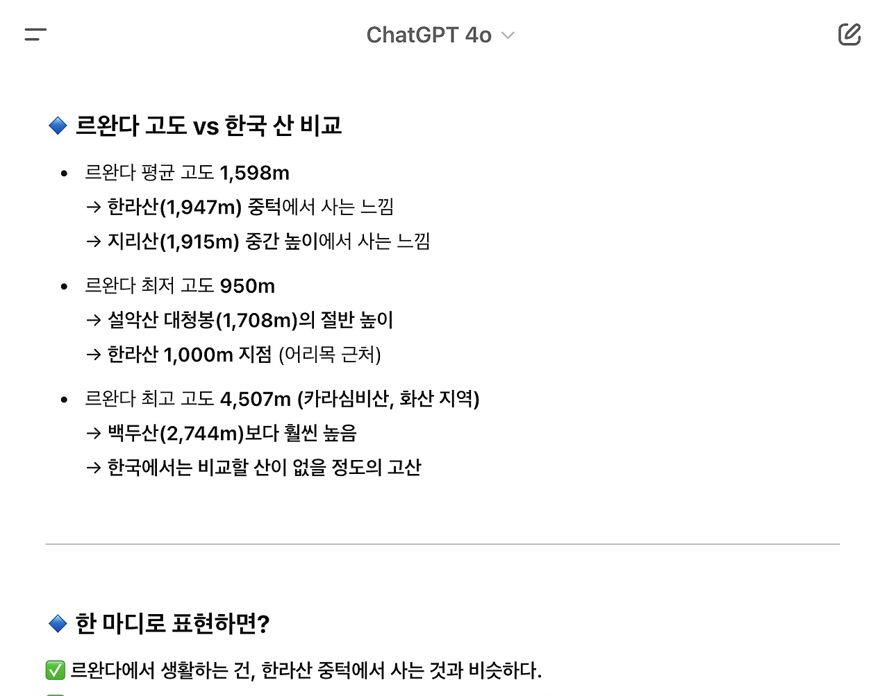 "르완다에서 생활하는 건, 한라산 중턱에서 사는 것과 비슷하다."