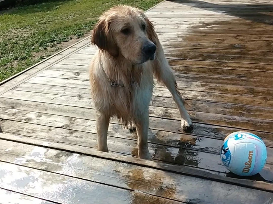 하루 종일 수영장에서 나오질 않았던 물트리버 삼식이.
