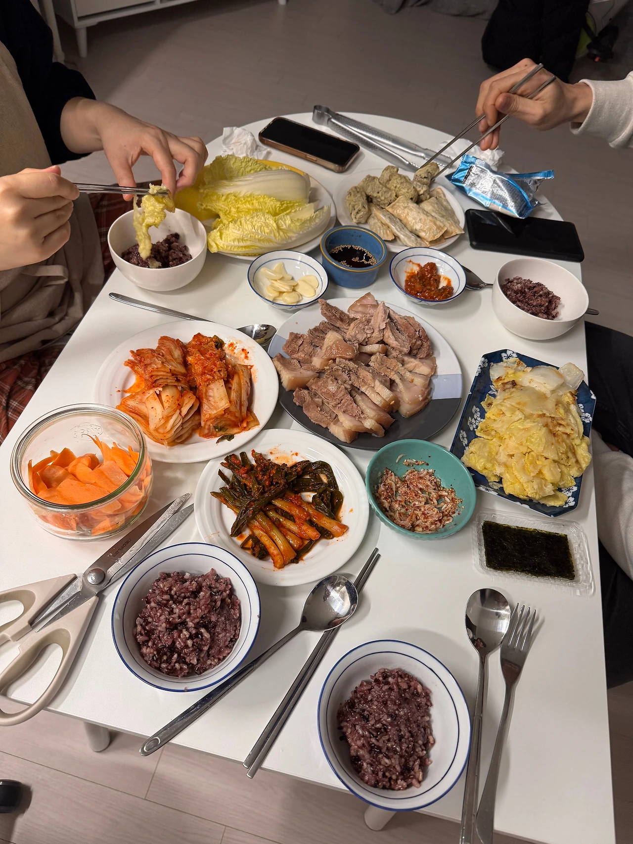 1월 2일, 퇴근하고 요가원으로 향했고 2026년 첫 요가수련을 마쳤다. 요가 수련을 마치고 마트에 가서 수육용 돼지 앞다리살과 파, 마늘, 배추를 샀다. 오후 네시, 친구들을 맞을 준비를 시작했다. 밀린 설거지를 하고 재료를 손질했다. 메뉴는 배추 전, 수육, 콩나물국, 갓 지은 밥, 냉동실에서 잠자고 있던 바삭한 튀김만두와 김말이다. 시간을 넉넉하게 잡고 요리를 완성했다. 요리를 하면서 쌓인 설거지를 하는 것도 잊지 않았다.