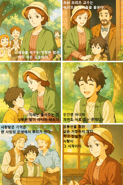 이 작품을 읽을 때 시대적인 제약이 크게 다가오지는 않는다. 신기하게도. 작품이 전하는 따스함과 사랑, 믿음과 선한 영향력은 현재를 넘어 미래 사회에서도 중요한 나침반이 될 것이라고 믿는다.