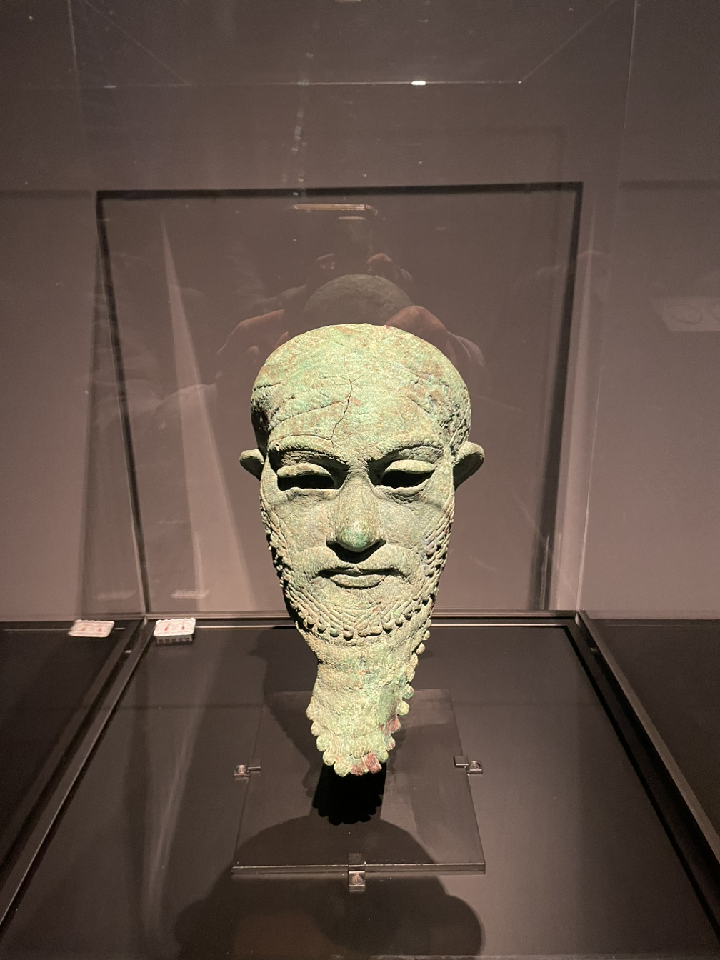 도장 뿐만 아니라 왕을 표현하는 얼굴상도 신기했다. 어진이라고 해서 저번에는 조선 시대 왕들을 그림으로 표현해 놓은 작품들을 보았었는데 이번 메소포타미아 전시에서는 얼굴상을 표현해 놓은 것이 색다르게 느껴졌다. 눈에 깊음이 느껴지고 수염이나 머리카락의 끝을 동글동글하게 표현하는 방식도 길쭉하게 늘어 놓는 우리나라 전통의 것과 달랐다. 게다가 재료도 구리 합금을 이용한 얼굴상이라 이렇게 표현할 수 있구나 전혀 생각지 못한 방식이었다.