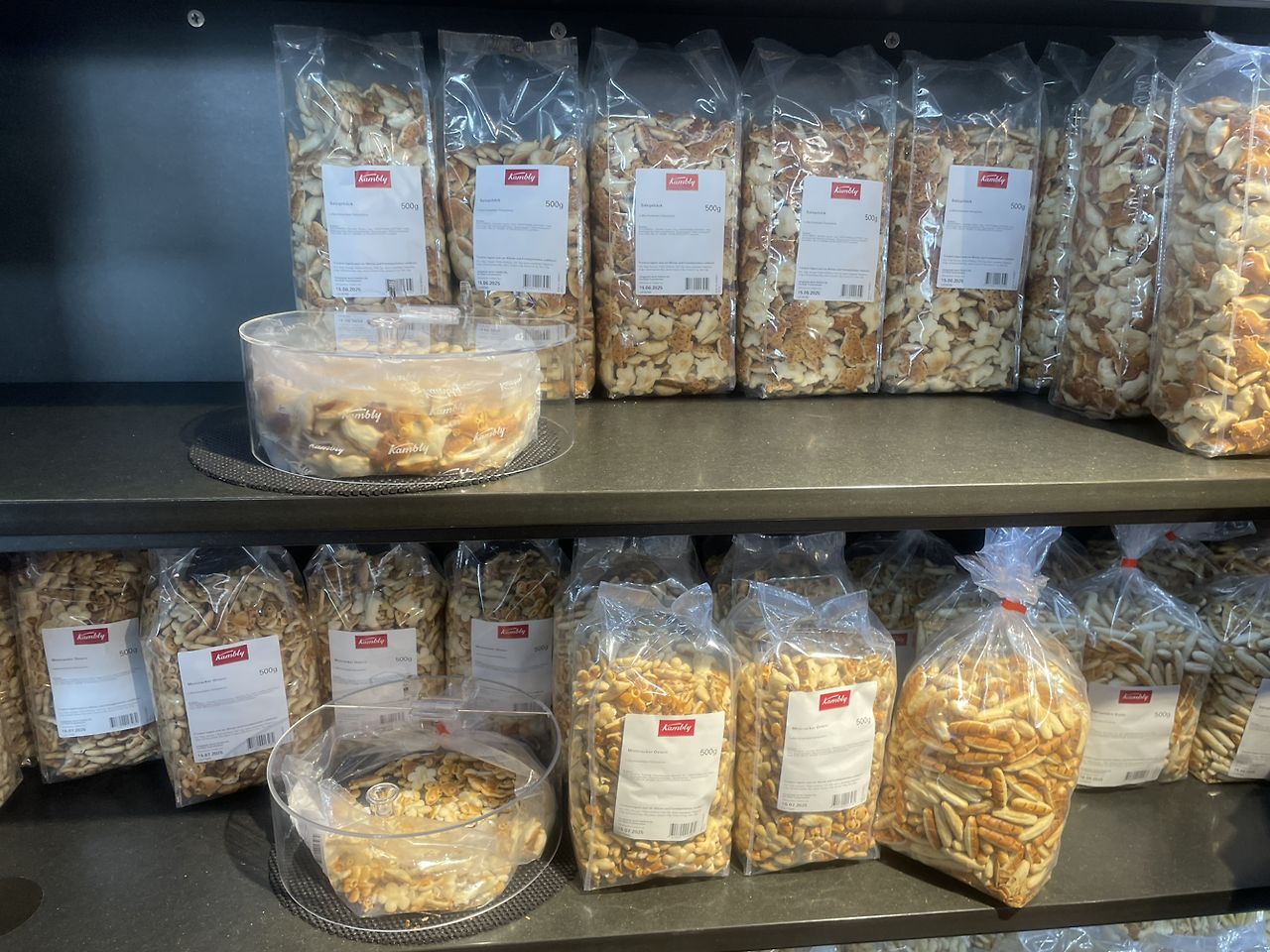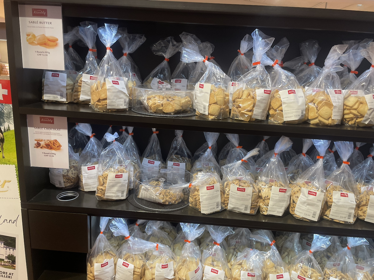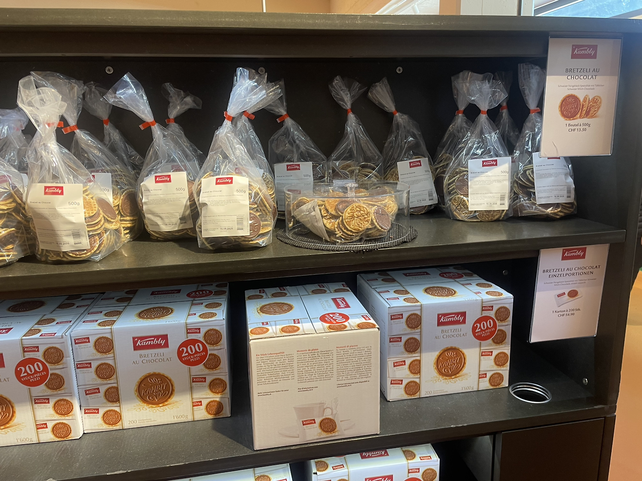그렇지만 실제 방문해 보니 박물관이라기 보다는 시식 가능한 가게에 가까웠어요. 스위스에서 이마트와 같은 미그로와 각종 마켓에서 다양한 종류의 캠블리 과자를 팔고 있어서 달고 짠 여러 가지의 과자를 먹어 보았는데 실제 가보니 종류가 엄청 많았어요. 동그란 플라스틱 통 봉지 안에 과자가 들어 있어 자유롭게 시식하고 마음에 드는 과자는 사먹기 좋아요. 마켓에서와는 다르게 대용량으로 팔고 있어서 맛보고 사도 좋을 것 같아요. 초콜릿이 있는 것, 짭짤한 것, 물고기 모양, 하트 모양 각양 각색의 과자 중에서 원하는 것을 골라 보세요.