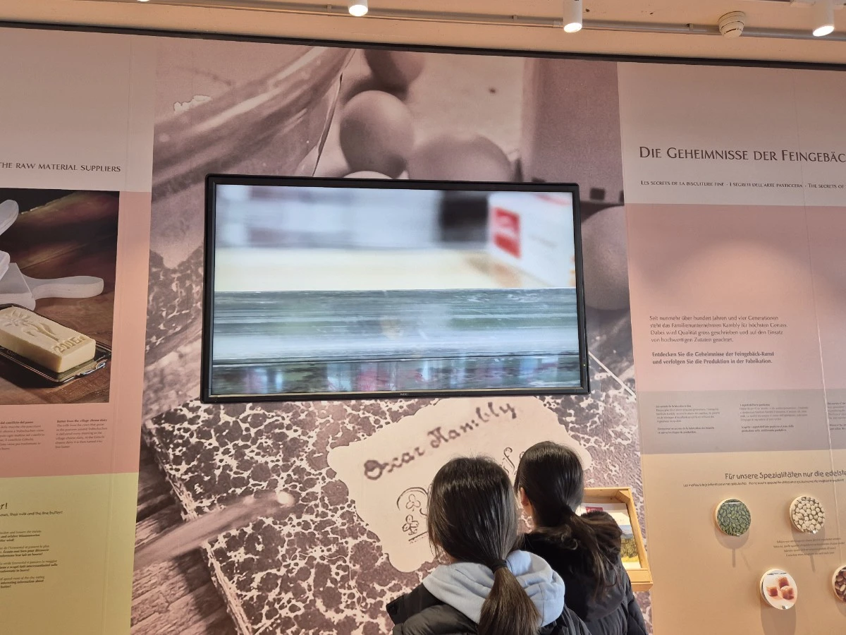 버터, 계란, 밀가루 등등 과자의 원료에 대한 간단한 설명이 있고 과자를 직접 만드는 동영상과 현재 기계로 만들어지는 동영상이 계속 TV화면으로 보여지고 있어요. 그래도 이 곳만 목적지로 가기는 아쉬워요.