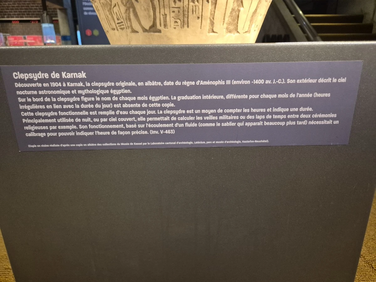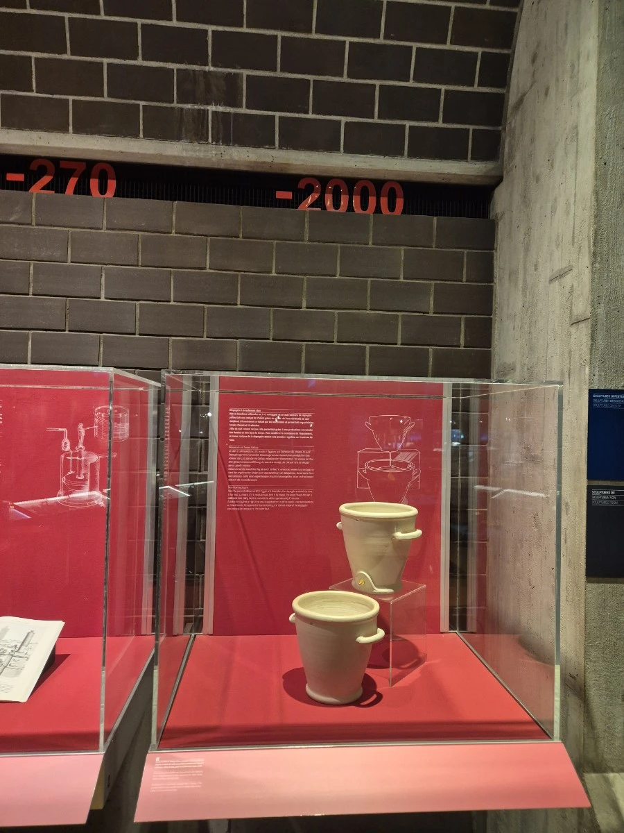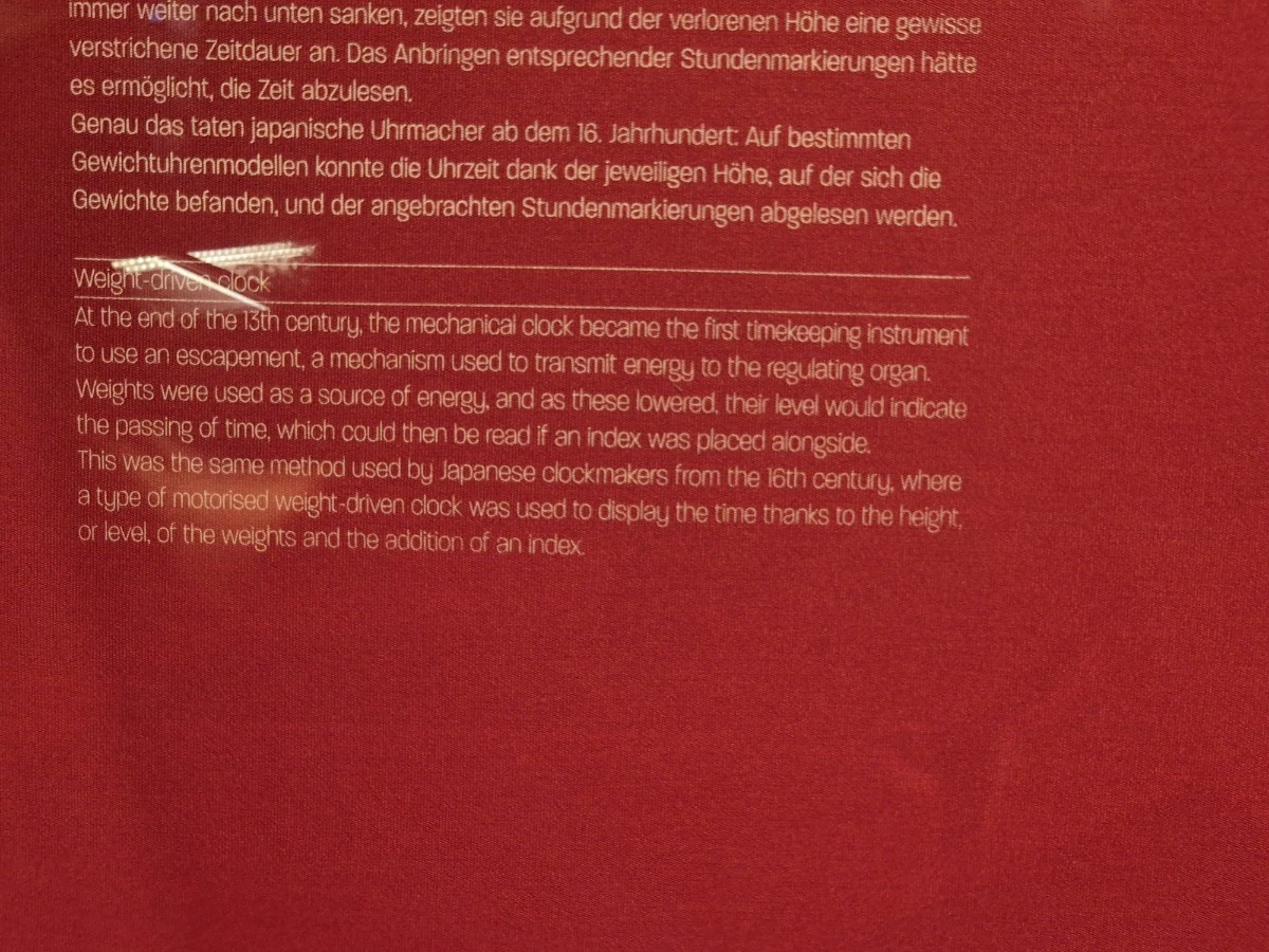 올라가면서 보니 역사 순서대로 제작된 시계가 전시되어 있어요. 아래 물 시계는 기원전 1400년경 이집트에서 만들어졌다고 하네요. 옆에는 모래시계가 있어요. 옛날에는 물과 모래가 지나는 일정 시간의 길이를 측정해서 시간 간격을 계산하는 도구로 활용했지요.