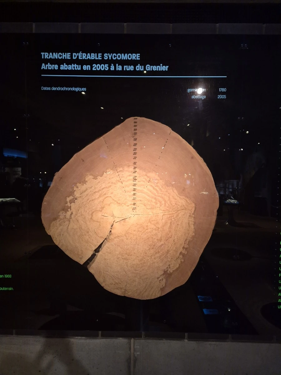 지나다 보니 커다란 나무와 나이테를 역사 순서대로 표시해 놓았어요. 1789년부터 2001년까지 기록이 나와 있어요. 벽에는 나이테 역사 순서대로 세계적인 유명한 일들이 적혀 있는데 이 나무 참 오래 살았네요.
