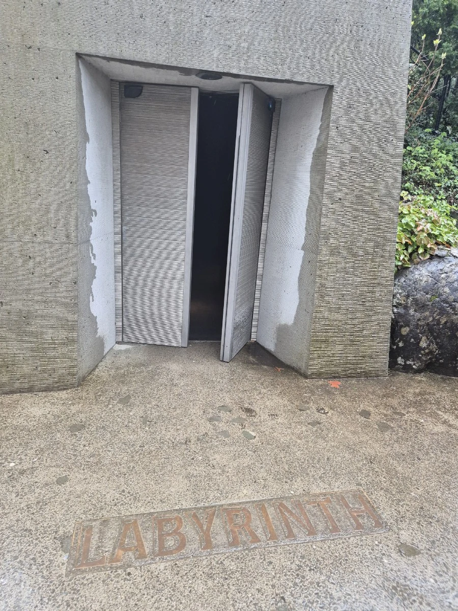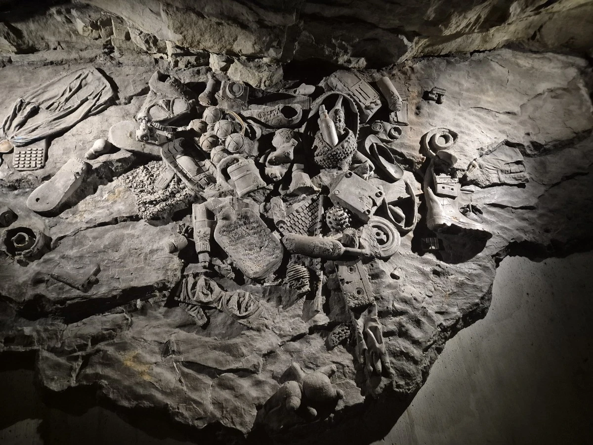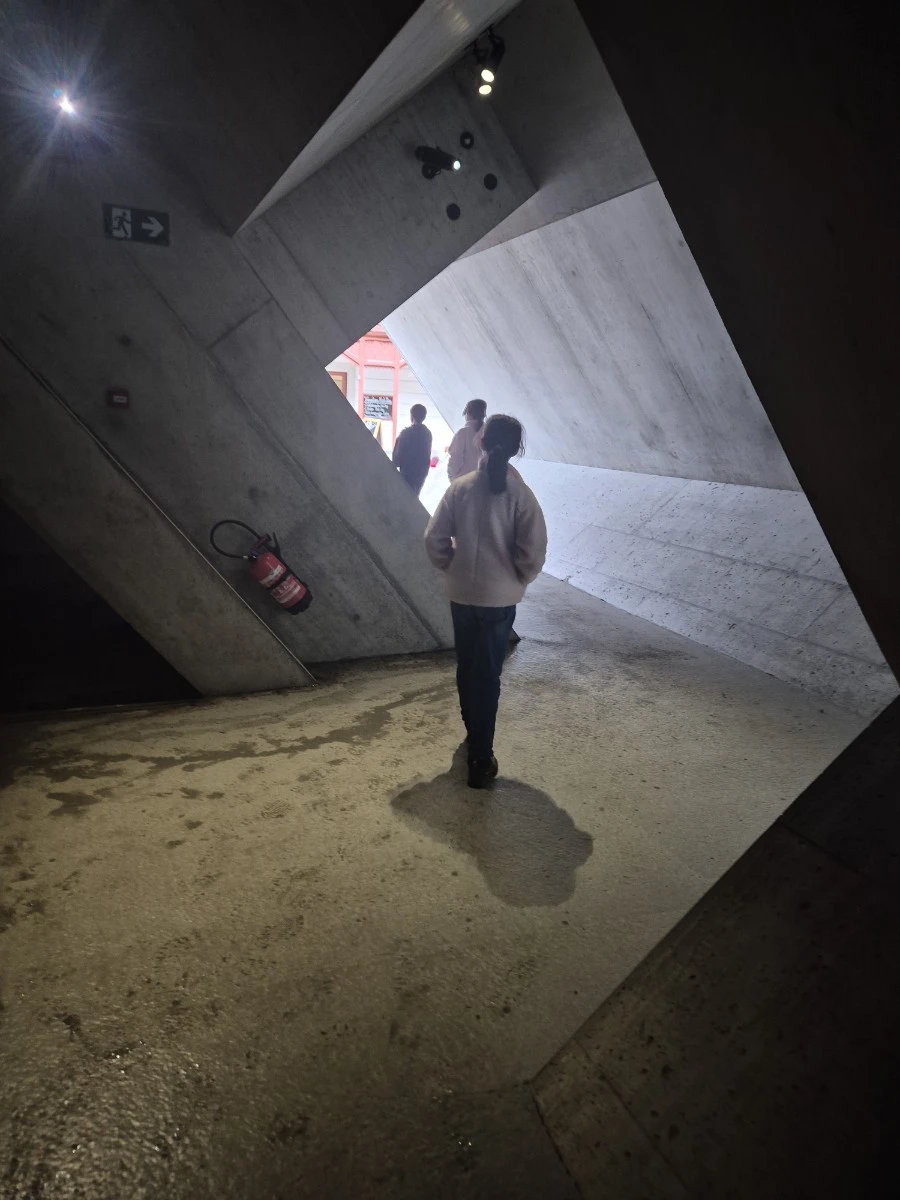 오솔길을 따라 올라가다보니 전망대가 나와요. 계단을 따라 쭉 올라가니 사방으로 루체른 시내가 훤히 다 보여요. 여기서 비를 잠시 피했는데 금세 멈출 비가 아닌 것 같아 4번 바위세상(Felsenwelt)으로 갔어요. 콘크르트 입구로 들어가니 알프스 형성 과정에서 만들어진 자연적 구조와 사각사각모양의 콘크리트 건물이 조화를 이루고 있어요. 2천만년 전의 암석을 비롯하여 화석의 과거, 우리 세대가 사용하는 물건으로 이루어진 화석으로 현재, 밖으로 이어지는 미래로 연결되는 전시였어요.