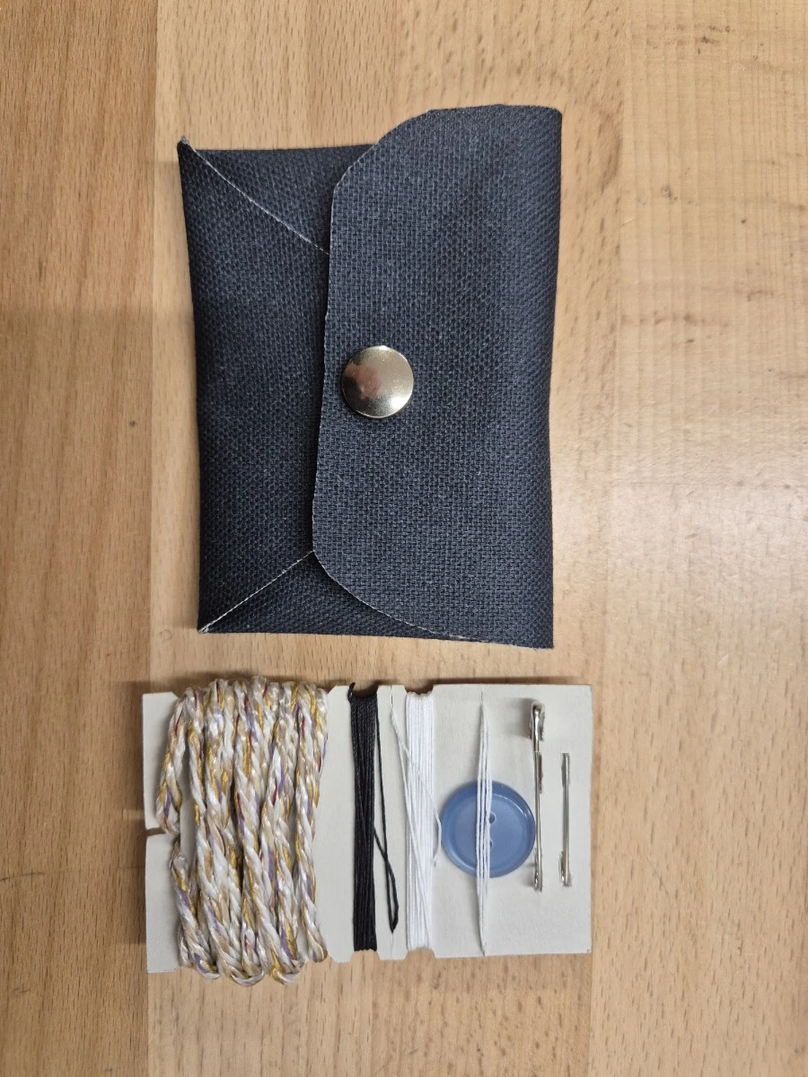 아이들은 등산할 때 사용 가능한 반짓고리를 만들었구요. 제법 그럴싸해요. 얇지 않은 그렇다고 너무 두껍지 않은 동전지갑용 천을 자르고 똑딱이를 붙여 조그만 동전 가방을 만들고 그 안에 등산용 노끈 실, 옷감용 실을 감고 단추, 옷핀을 넣어 동전가방에 휴대해요. 수선을 위한 기초 장비를 직접 만들어 볼 수 있어서 아이들은 실용적인 선물을 만들어 가는 느낌이었어요.
