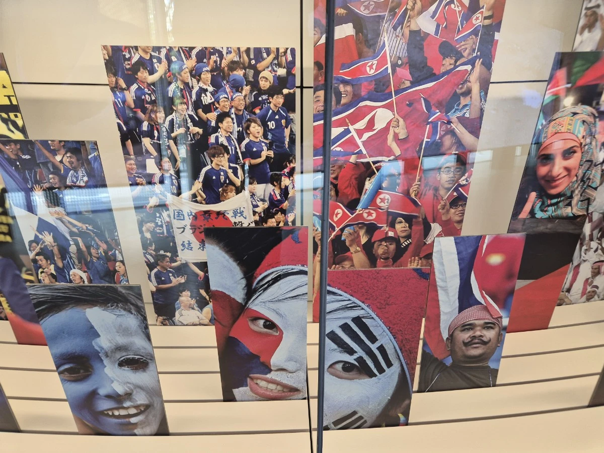 근처에 역대 남자 월드컵과 여자 월드컵에 따라 사진이 전시되어 있는데 역시 그중에 한국 사진을 찾아보았어요. 눈에 띄는 것은 2002년도 월드컵이었어요. 한국에 있는 모든 사람들이 처음 맞이하는 4강 진출에 흥분해서 응원하느라 온 나라가 시끌벅적했잖아요. 빨간색 응원 티셔츠를 입고 ‘붉은 악마’라는 이름으로 함께 응원하는 모습도 사진에 담겨 있어요.
