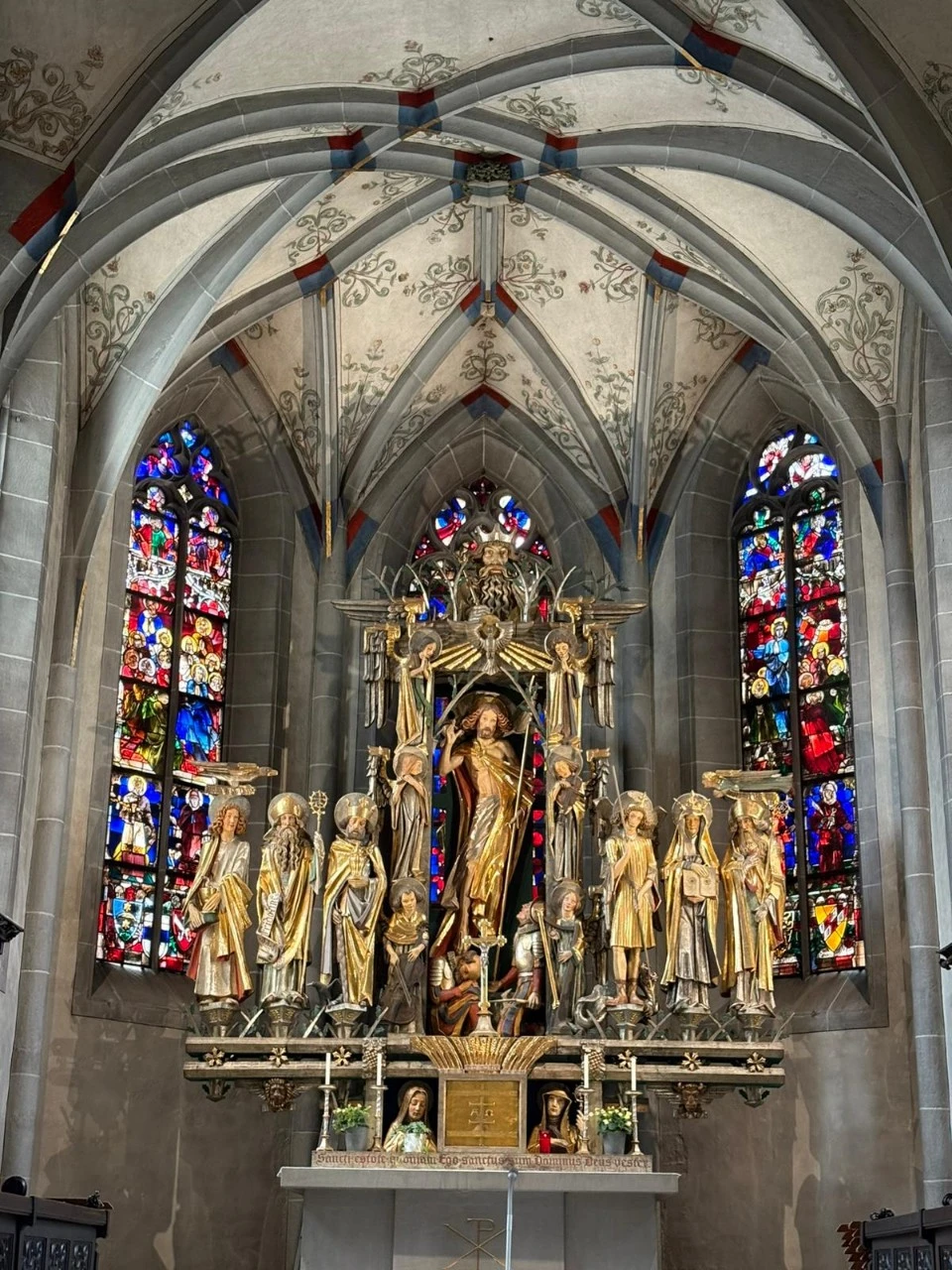 1478년에 지어지기 시작해 5년 만에 완공되고 16세기 중반에 확장된 성 오스발트 교회에 들어갔어요. 오르간이 연주되고 교회 안에서 울려 퍼지는데 스태인글라스와 전면 중앙에 예수님 동상과 더불어 경건한 그 느낌이 이루 말할 수 없을 정도로 감동이었어요. 교회 건물은 후기 고딕 양식으로 지어졌다고 해요. 요새 읽는 책에서 고딕 양식에 대한 내용이 나왔어요.
