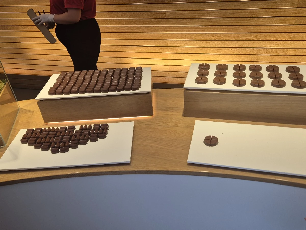 마지막 코스는 역시 시식 코너예요. 바로 만들어진 초콜릿을 실컷 먹을 수 있어요. 맛있어서 계속 입 속으로 들어가지만 모든 것이 적당히가 제일 좋다는 것도 잊지 마세요!