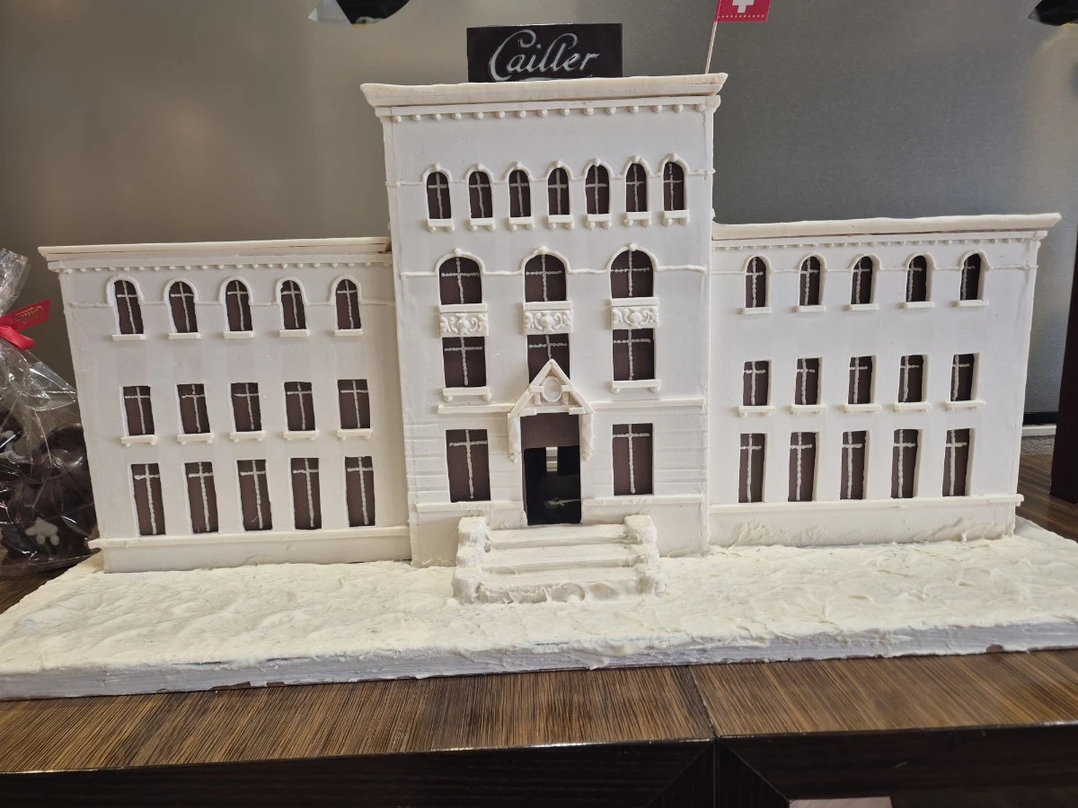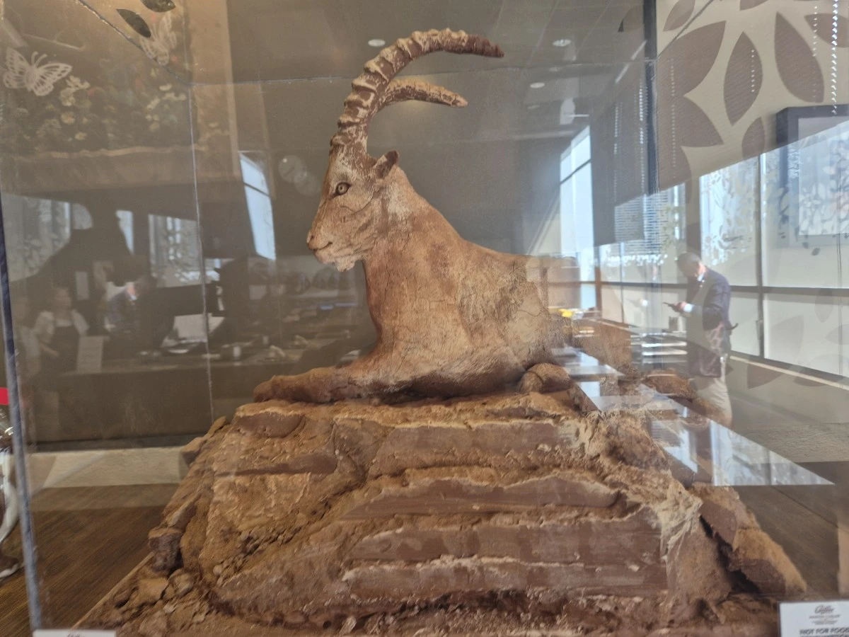초콜릿이 굳는 동안 기다리면서 뒷면에 전시된 선생님들이 만드신 초콜릿 작품들을 감상했어요. 초콜릿 건물을 화이트 초콜릿으로 만든 작품과 산 위에 염소 작품이 인상 깊어요. 감히 먹을 수 없을 것 같아요.