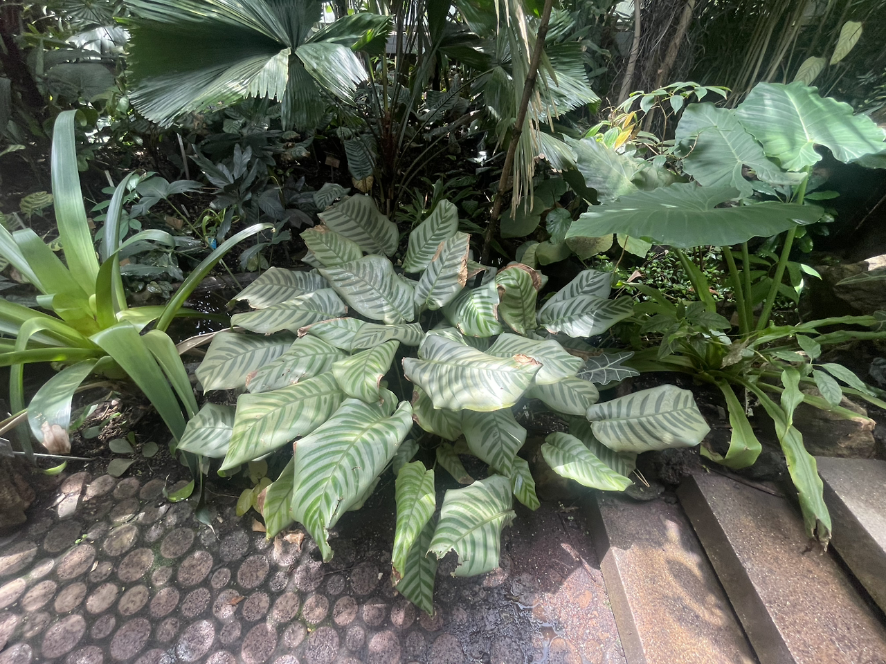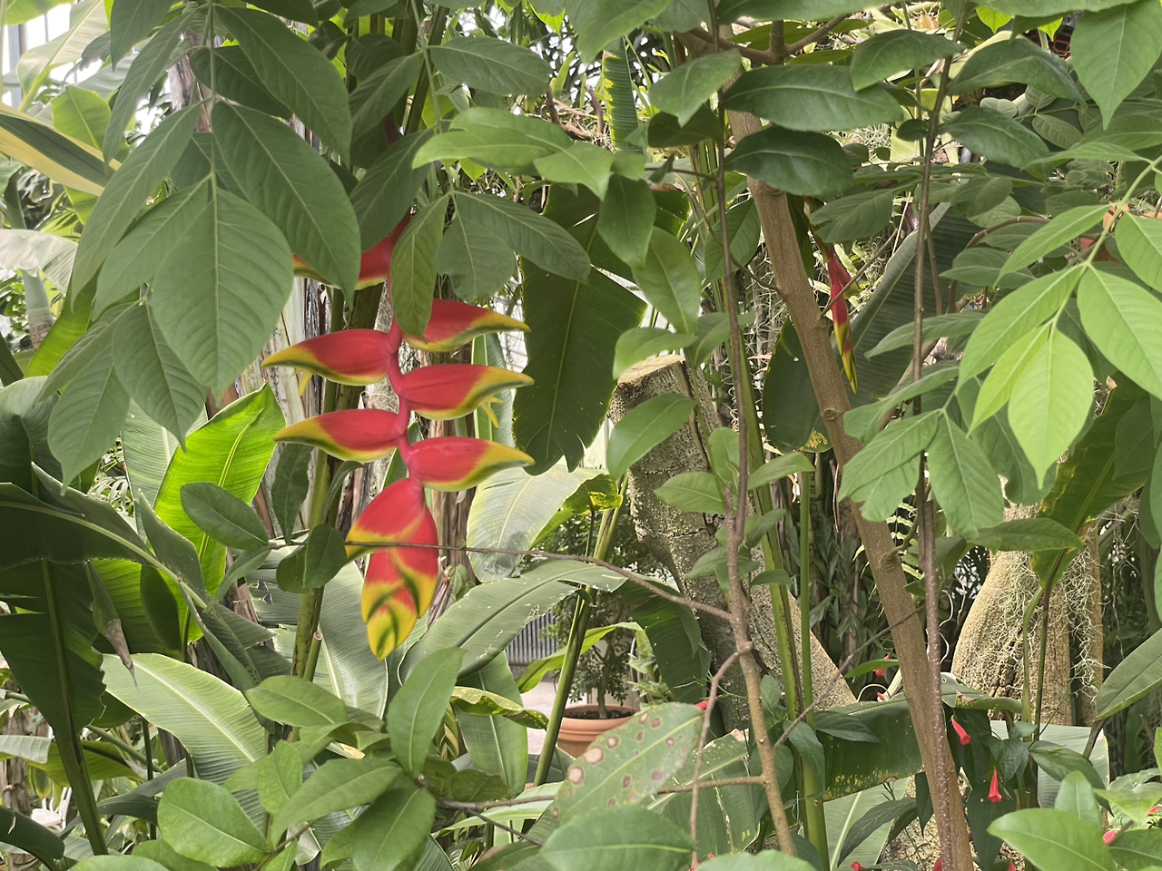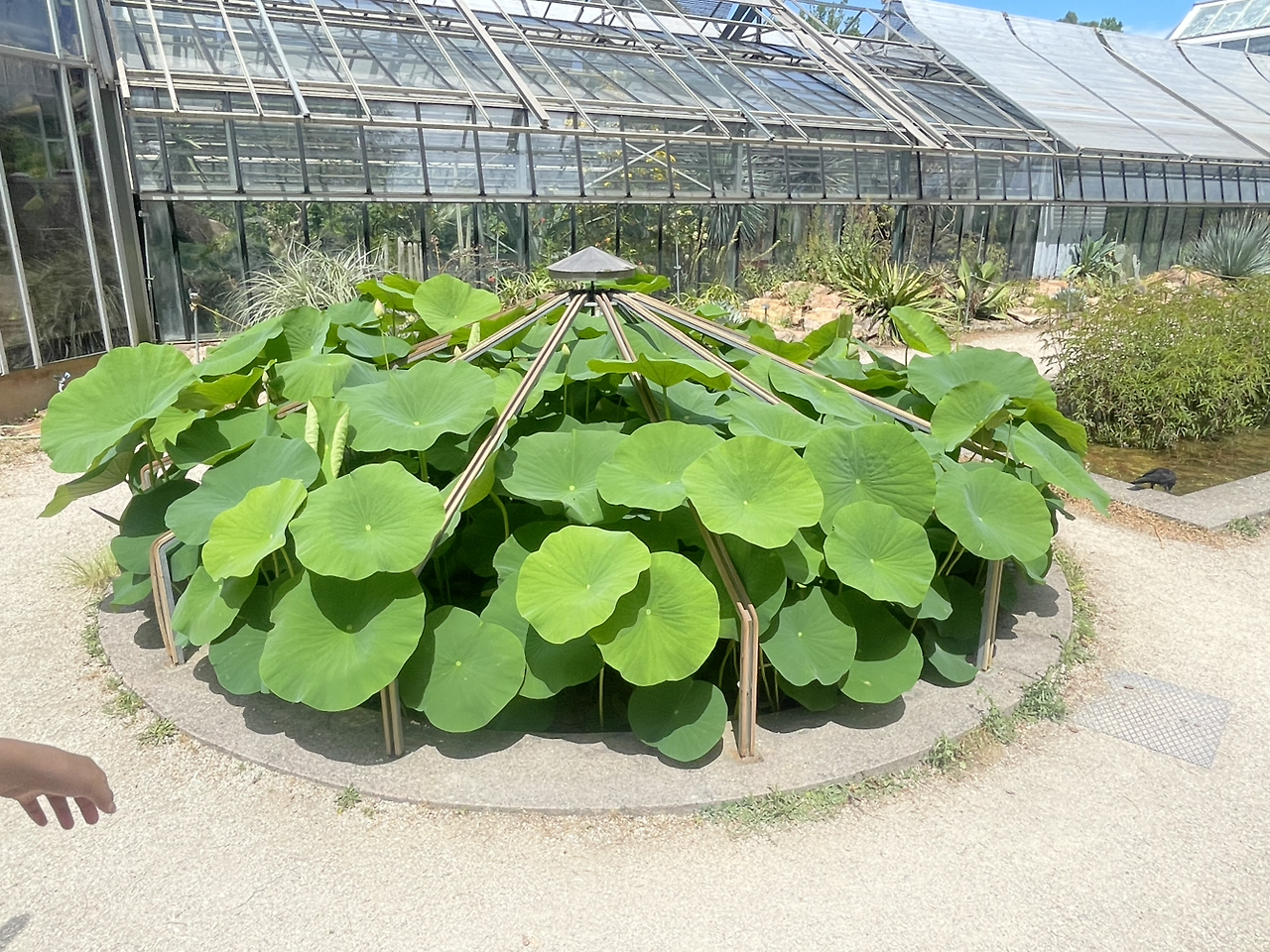 밖에는 조그만 연못 안에 연잎이 무성하게 올라와 있어요. 아참 아까 온실에 보았던 잎 중에 희한한 잎이 있었어요.(오른쪽 아래) 빨간색과 노란색이 섞여 새부리 모양을 한 이 잎은 과연 꽃일까? 잎일까? 아이들과 한참 토론을 했지요. 유럽에서 식물원에 오면 한국에서 흔히 볼 수 없는 색다른 식물들을 볼 수 있어서 좋아요.