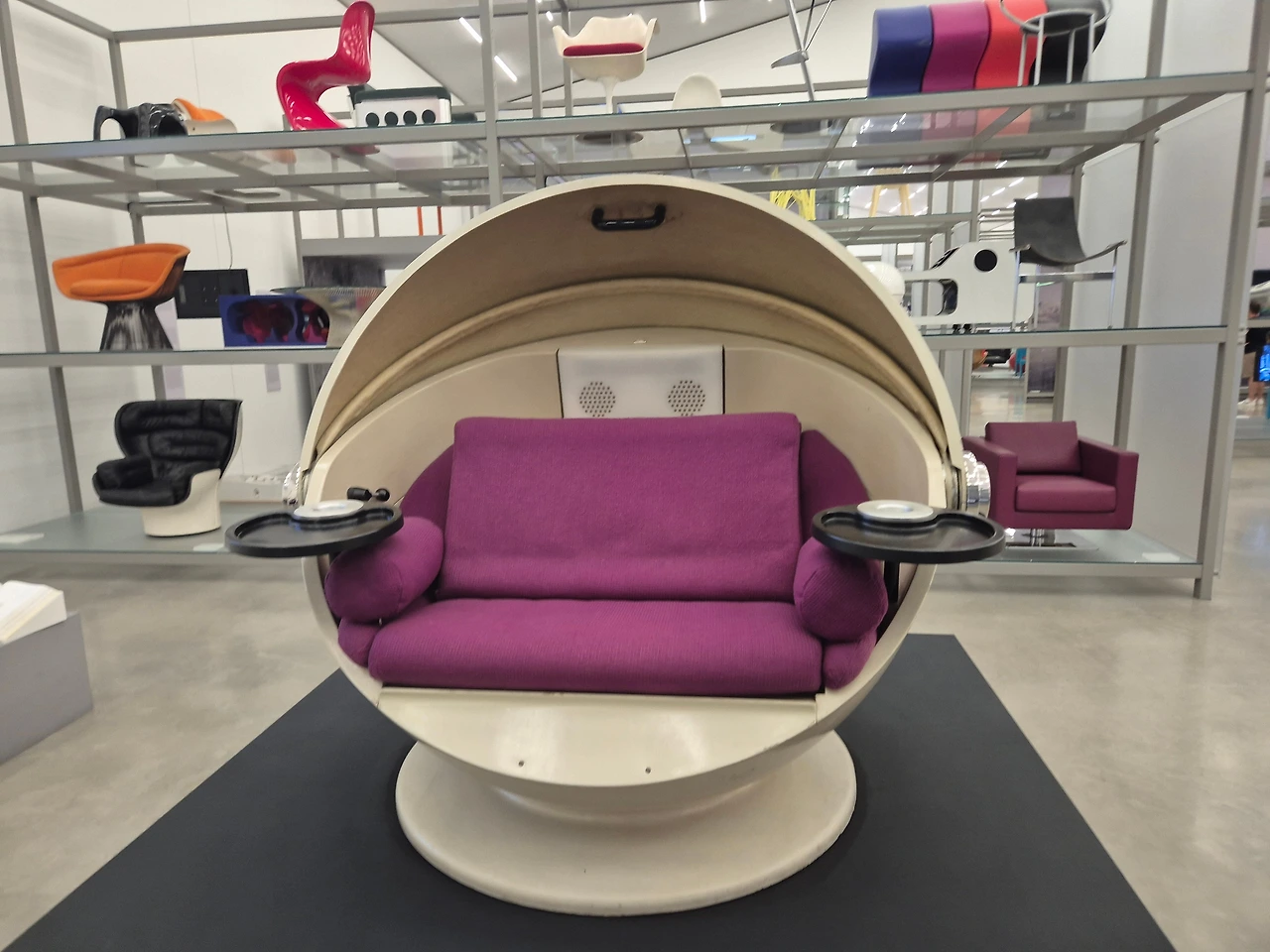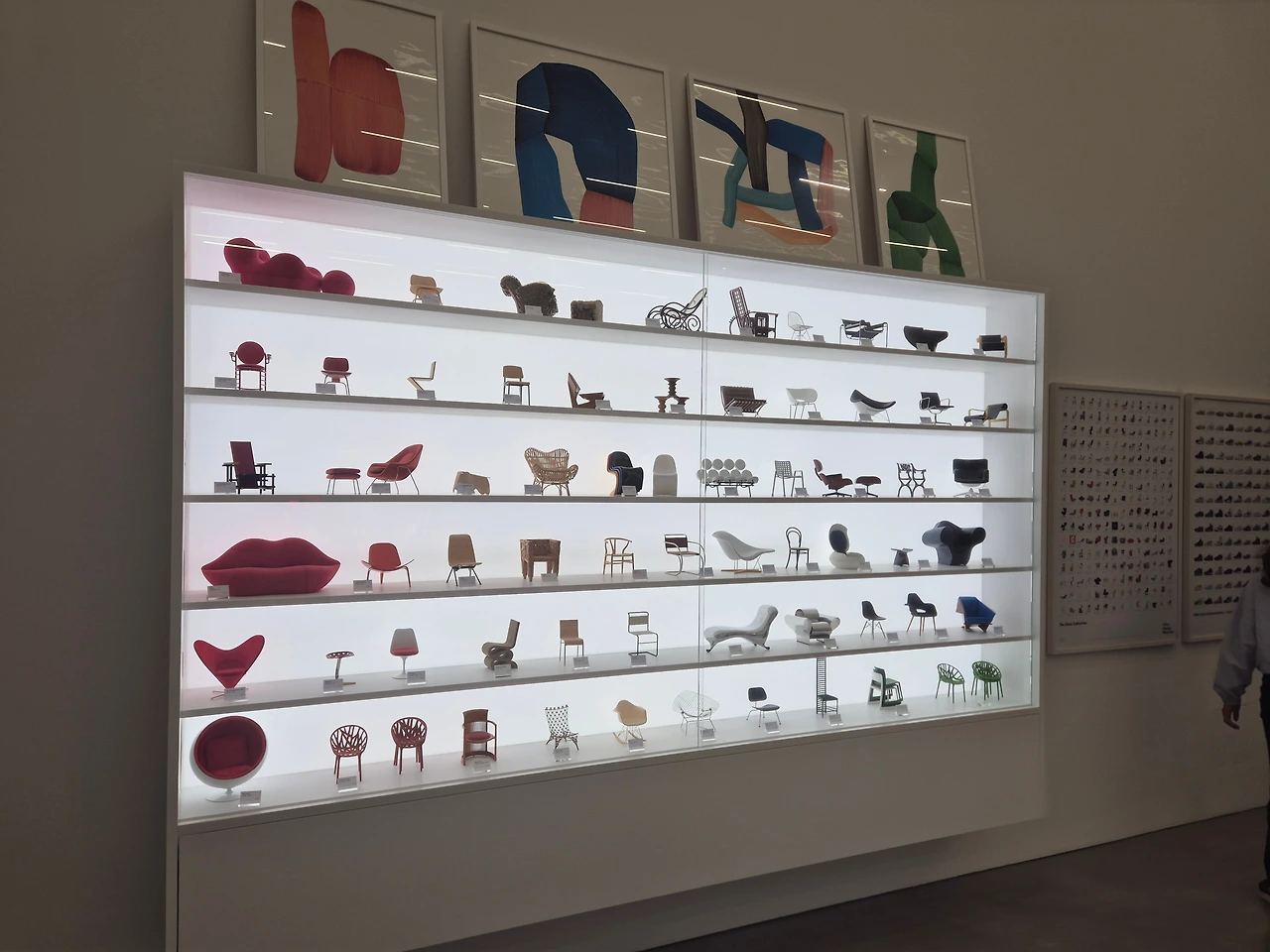 그래도 일단 돈을 낸 유료 전시를 먼저 보자며 데려간 곳은 비트라 샤우데포 의자 전시장이었어요. 미래와 우주 시대까지 형상화되어 꾸며진 곳에 어울리는 의자가 전시되어 있었어요. 그 와중에 아이들은 자기가 갖고 싶은 꿈의 의자를 찾아보았어요. 기념품 가게에는 의자 미니어처도 판매하고 있었는데 큰 의자도 물론 사고 싶지만 작은 미니어처 장식품 의자들도 갖고 싶네요.