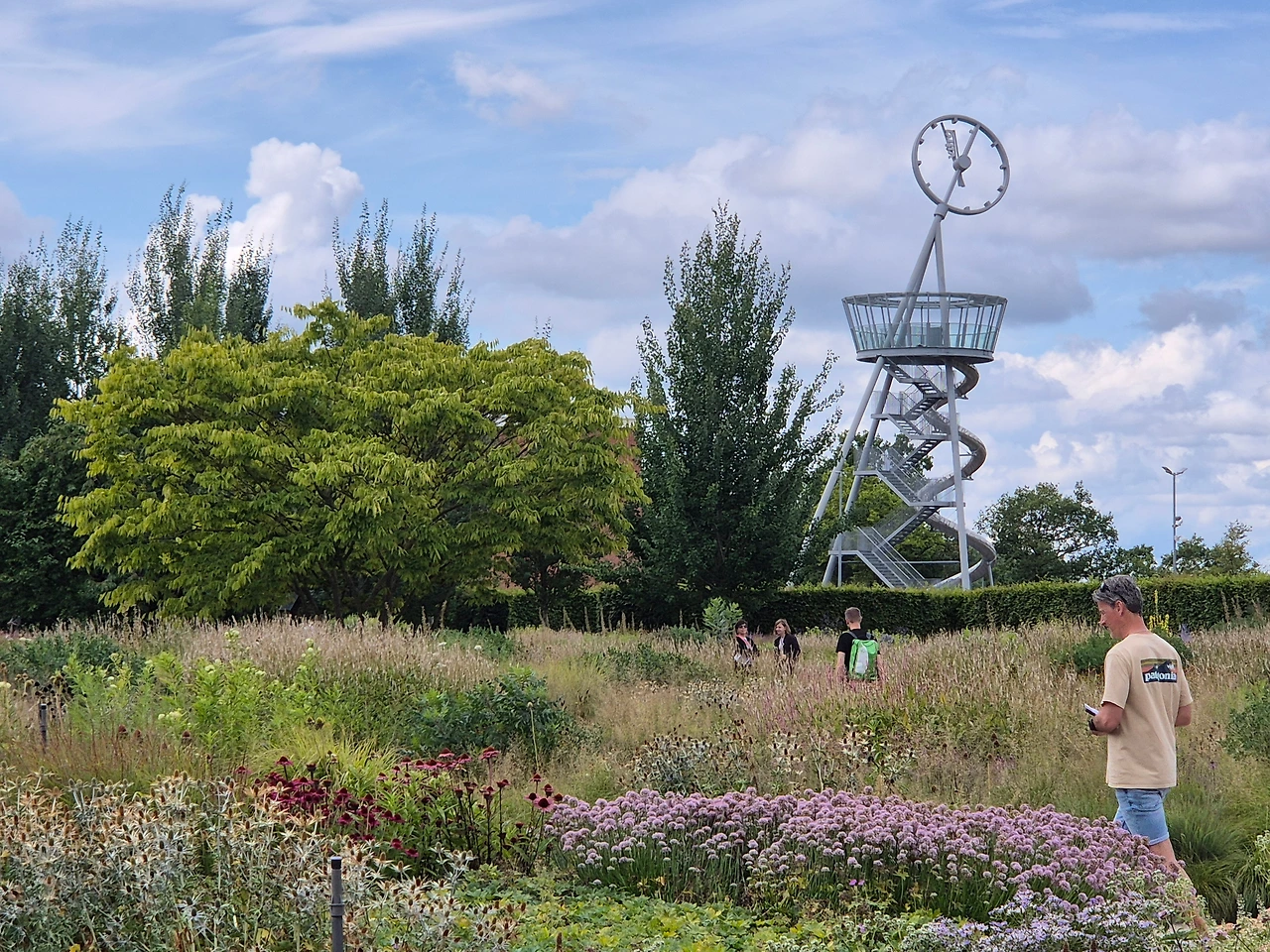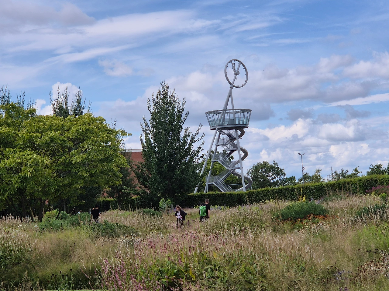 아이들은 박물관을 나오자마자 멀리서 보이는 거대한 미끄럼틀을 타보고 싶다고 해서 가보았어요. (비트라 슬라이드 타워) 가는 길에 정원이 잘 꾸며져 있네요. 안타깝게도 슬라이드는 아래 출구 부분이 막혀 있었어요. 안내판을 찾아보았지만 이런저런 안내가 없어서 잘 모르겠어요. 다만 지금은 타지 못하게 막아 놓았어요. 아이들은 엄청 실망을 했지요.