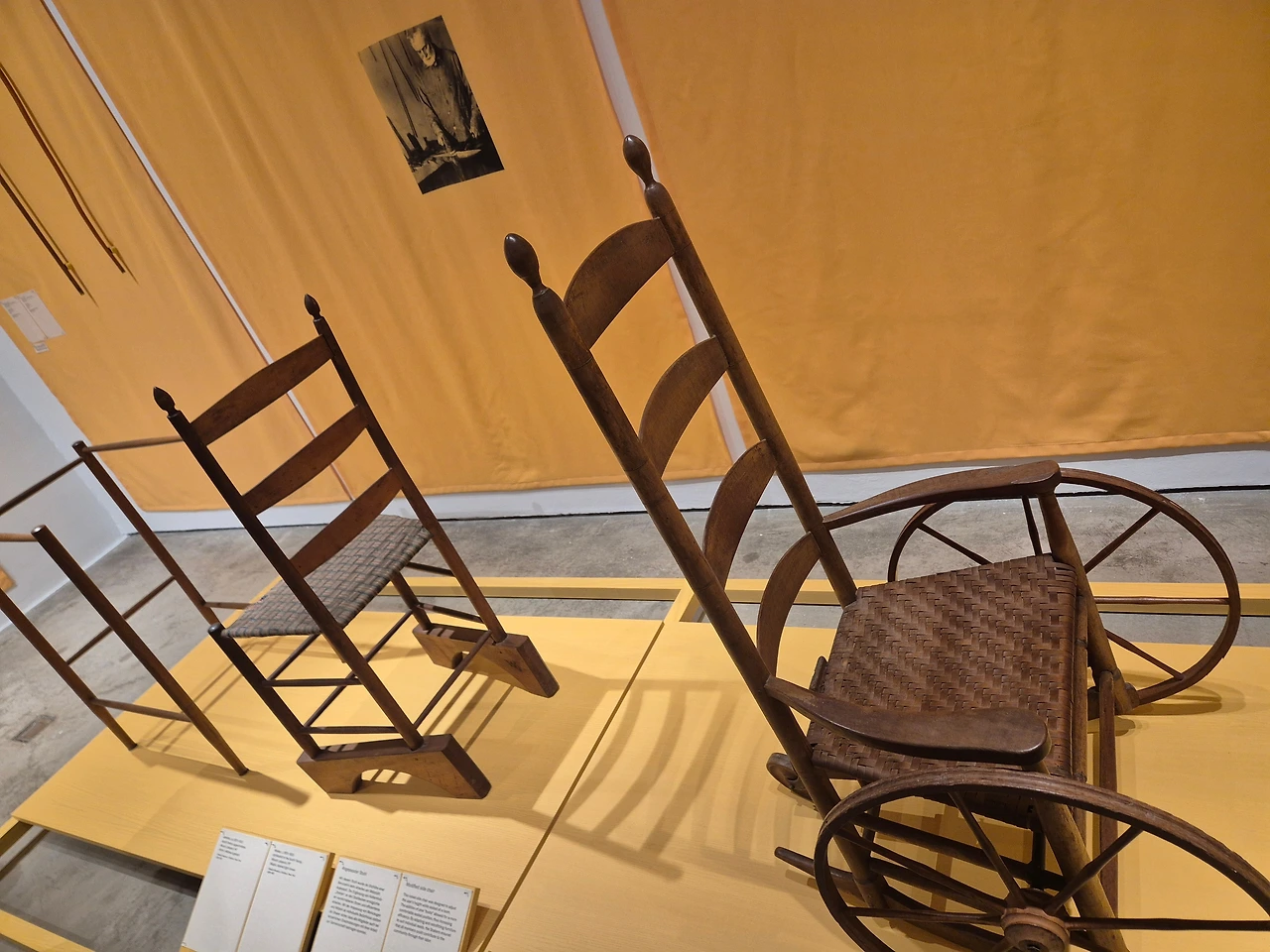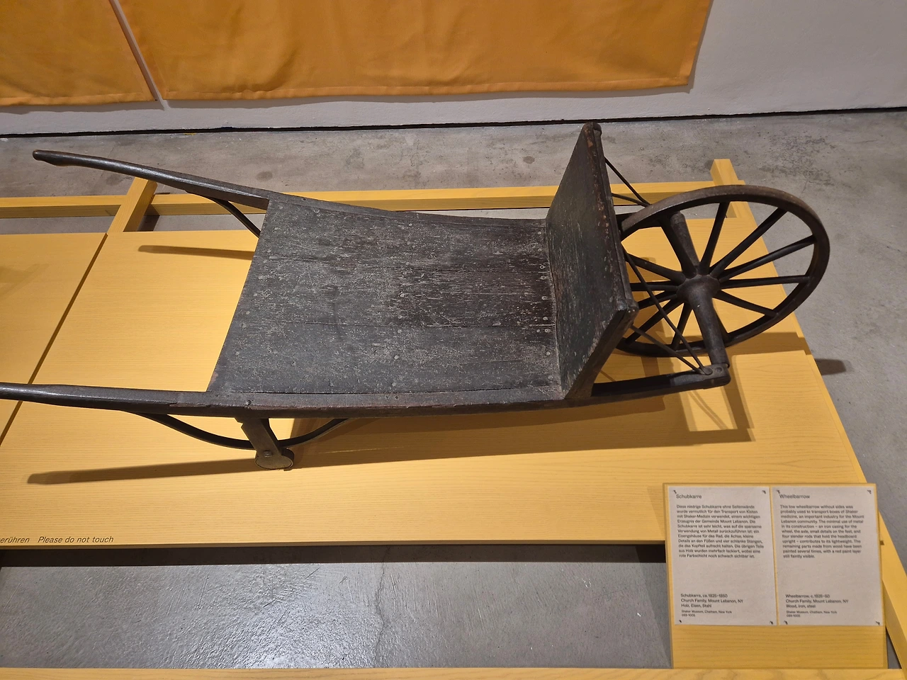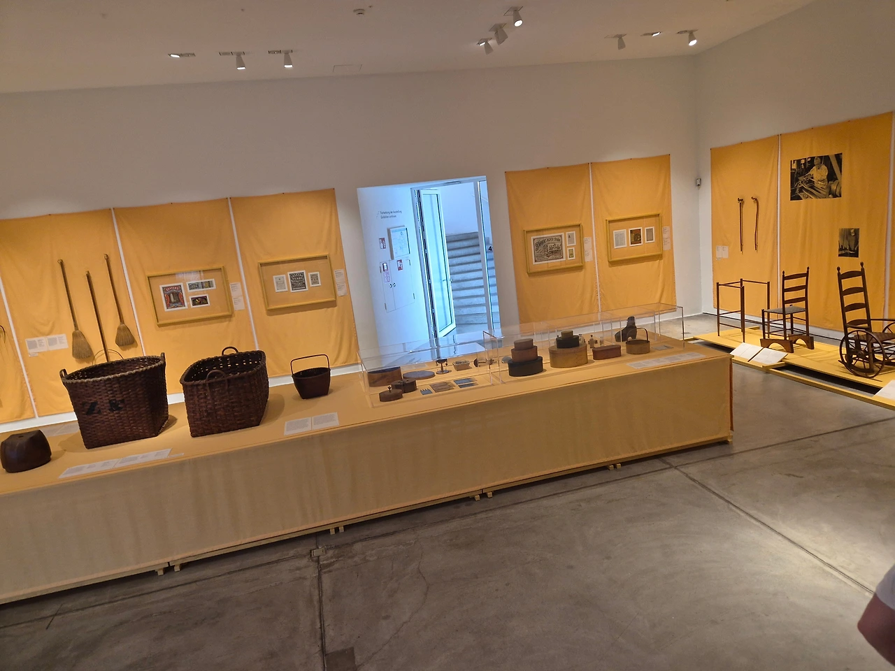 18세기의 미국 교회 세이커 교도들은 종교적인 박해를 피해 영국에서 미국으로 건너갔어요. 전시실에서는 세이커 교도들의 신앙과 그들의 노래와 춤 영상을 볼 수 있었어요. 그들은 자신의 종교를 기반으로 독특한 디자인 문화를 발전시켰지요. 사용했던 의자, 휠체어, 침대, 수레, 가구, 그림 등등을 둘러보았어요.
