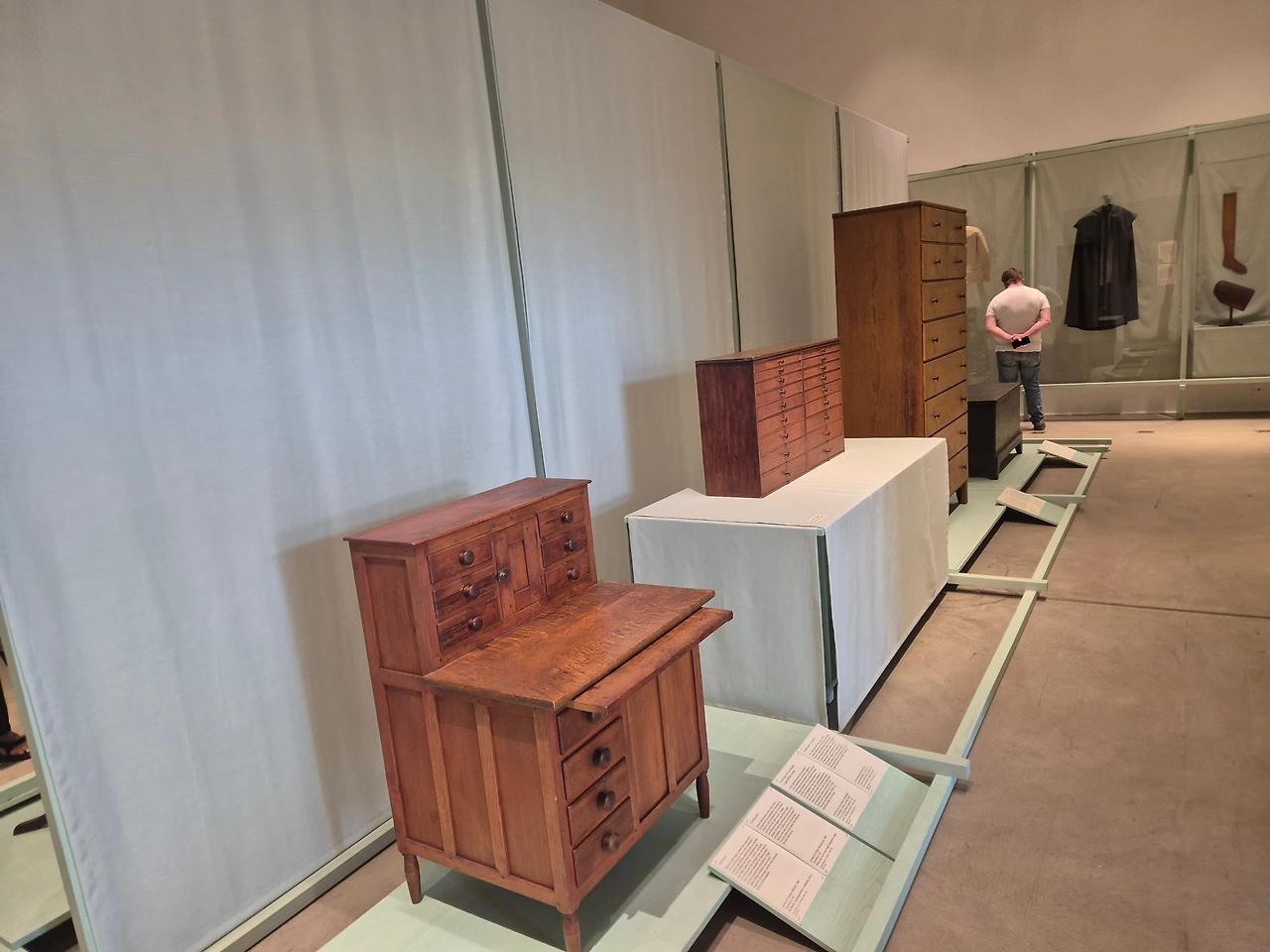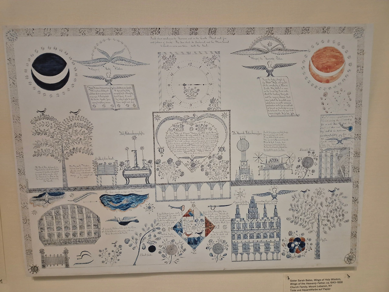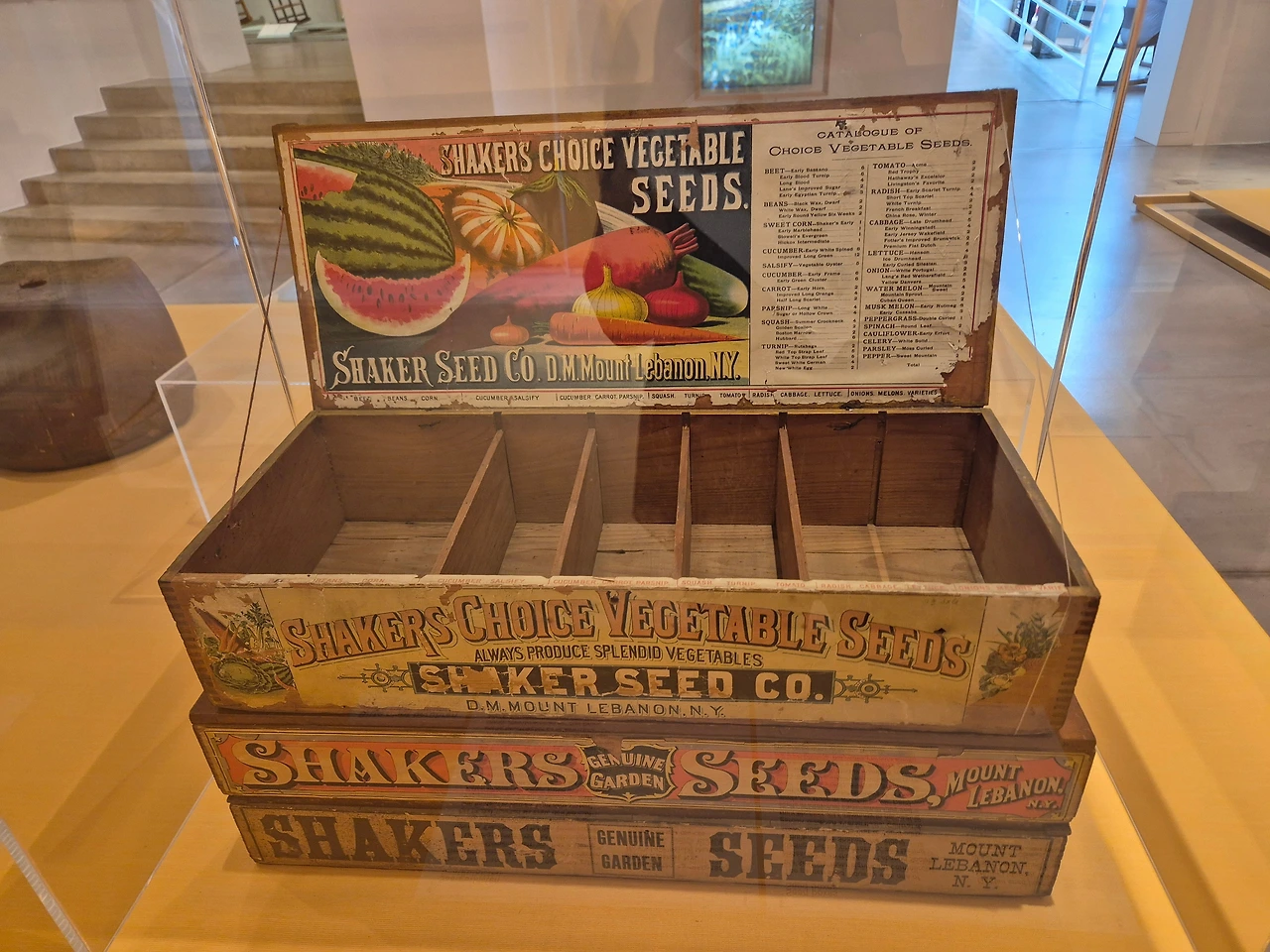 18세기의 미국 교회 세이커 교도들은 종교적인 박해를 피해 영국에서 미국으로 건너갔어요. 전시실에서는 세이커 교도들의 신앙과 그들의 노래와 춤 영상을 볼 수 있었어요. 그들은 자신의 종교를 기반으로 독특한 디자인 문화를 발전시켰지요. 사용했던 의자, 휠체어, 침대, 수레, 가구, 그림 등등을 둘러보았어요.