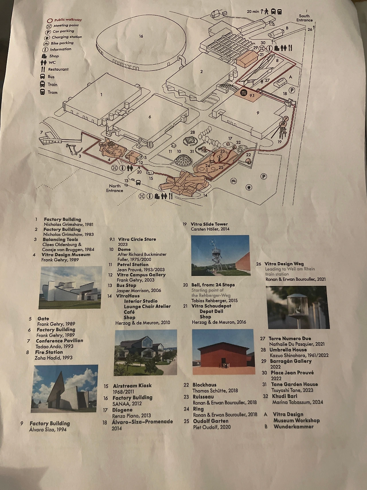 무료로 볼 수 있는 비트라 하우스 (아래 약도 14번) 내 쇼룸과 의자 전시실 등등도 있고 유명 건축물들도 곳곳에 있고요. (안타깝게도 비트라 하우스 외부는 공사 중이었어요. 실내는 볼 수 있고요.)