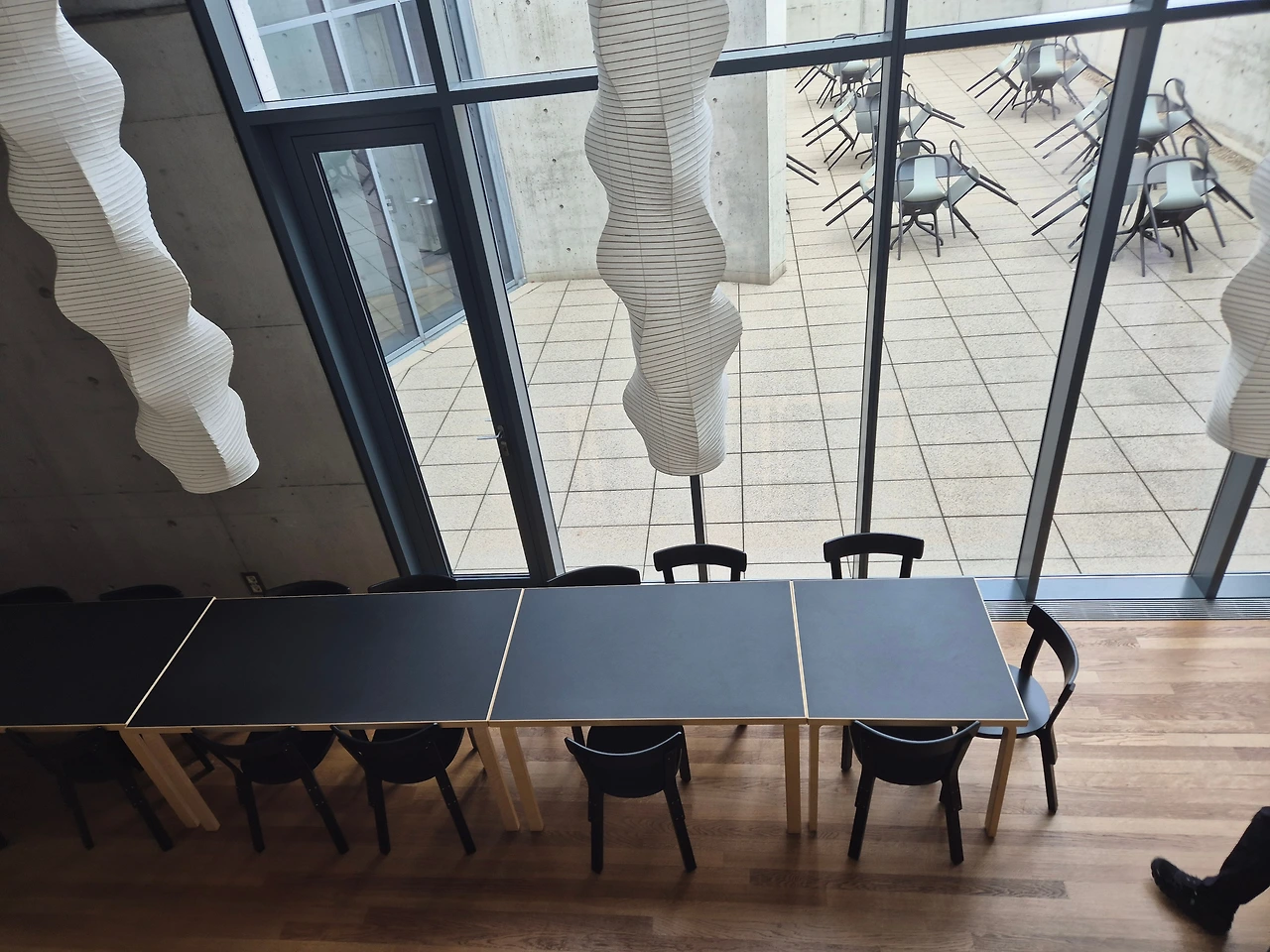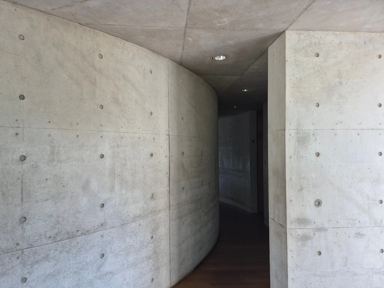 이어서 간 곳은 안도 다다오 컨퍼런스 파빌리온이었어요. 일반 사람들은 건물 안까지 들어갈 수 없는데 가이드선생님이 직접 열쇠로 문을 열고 함께 들어갔어요. 역시 들어가자마자 감탄사가 절로 나와요. 곡선과 직선을 잘 활용해 사람들의 시선을 이끌고 계단을 따라 심플하게 디자인된 기다란 전등을 보며 내려가면 차 마시고 회의하는 공간이 나와요. 노출 콘크리트로 벽이 지어졌고 자연광이 들어오는 빛을 잘 조절해서 건물 안에 있는 사람들을 화사하게 환영하는 것 같아요.