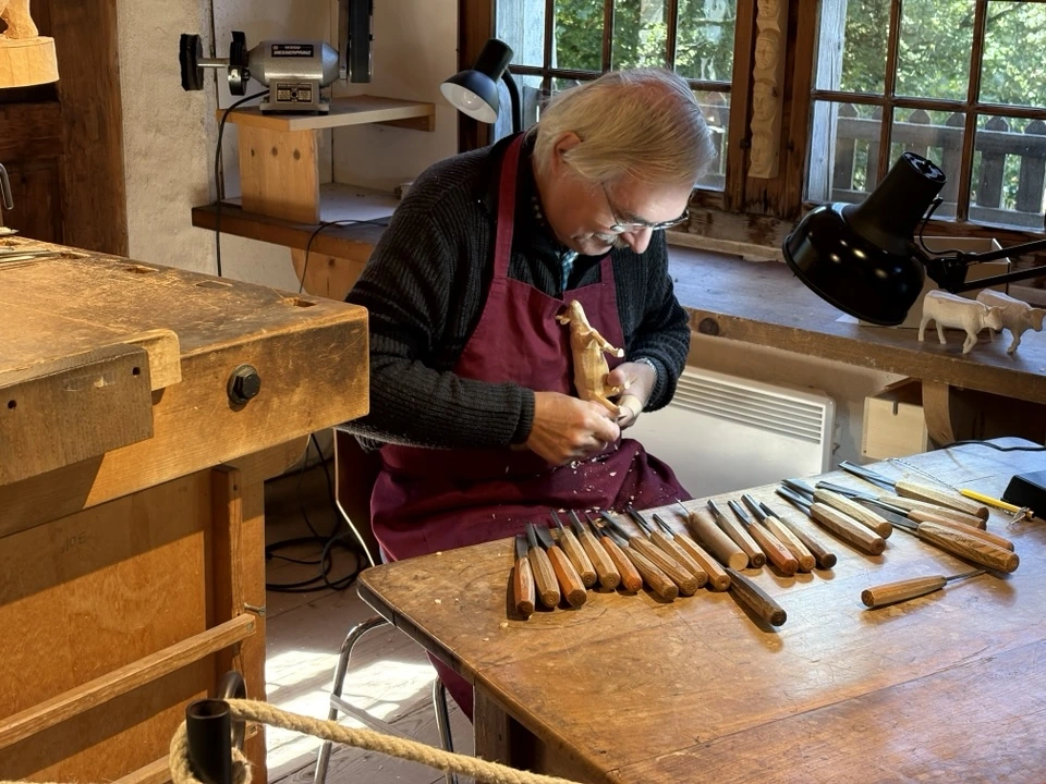 여기서도 스위스 옛집들을 구경했어요. 집집마다 특색있게 꾸며 놓았는데 어느 곳에서는 안에 들어가 보니 옷에 자수를 놓는 사람이 실제로 옛날 방식을 재연해 주고 계셨어요. 자수 뿐만 아니라 치즈, 빵, 목공예, 짚공예, 옷감 , 도자기 등등을 만드는 공방에서 장인이 옛날 방식대로 만드는 모습을 지켜 볼 수 있었어요.