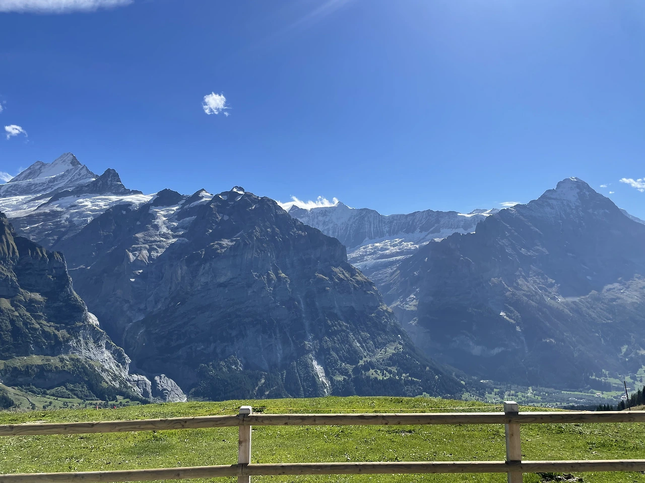두 가지 놀이 기구를 타고나니 벌써 3시가 넘었어요. 피르스트 꼭대기에서 부지런히 다시 올라가 전망대에서 아이거 북벽 등등 그린델발트 주변 하이킹 전망을 보고 사진 찍으며 돌아다니다 보니 4시 30분! 원래 계획은 하이킹까지 해서 호수까지 보고 싶었지만 구글로 찾아보니 약 50분 걷는 거리였고 오후 6시에 곤돌라가 마감이라고 해서 아쉽게 발걸음을 돌렸어요.
