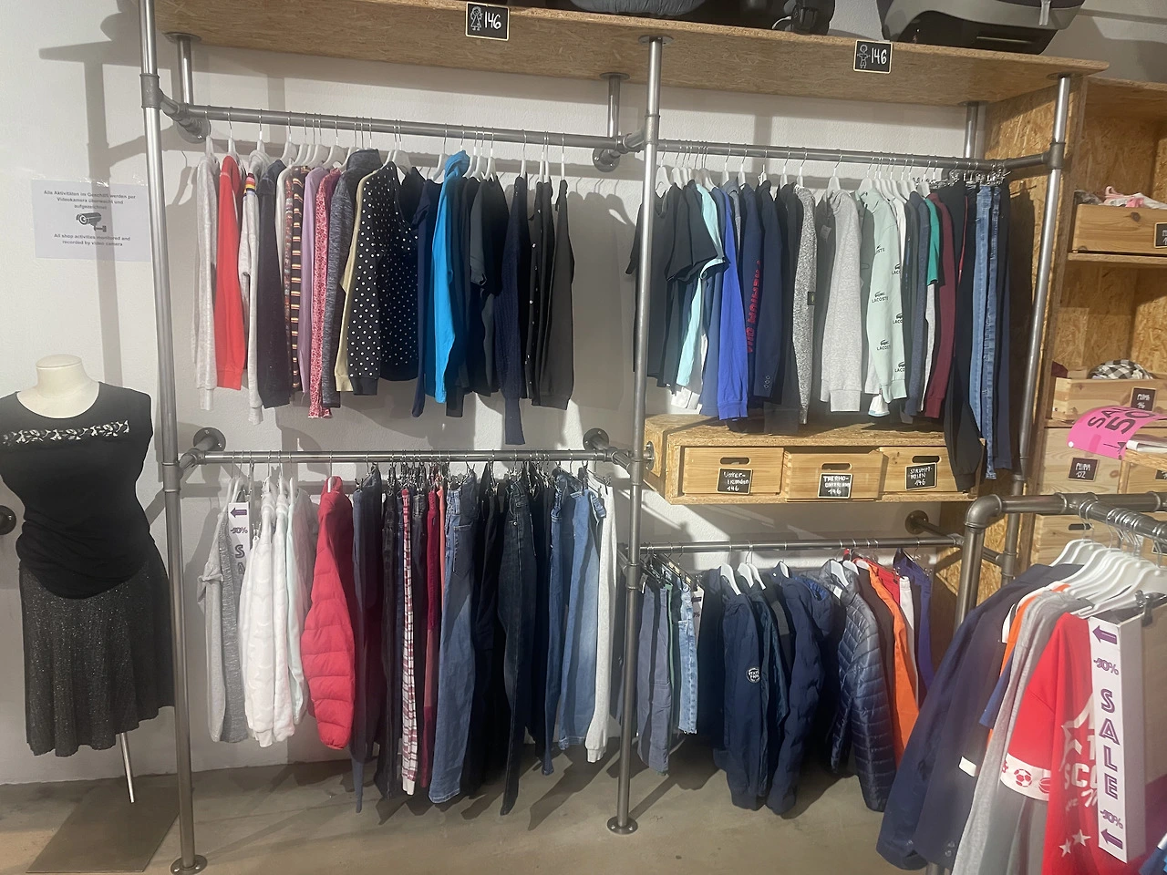 지난가을 아이들이 학교 캠핑 간다고 했을 때 방수바지를 사기 위해 중고옷가게에 간 적이 있어요. 거기서 아이들 방수 바지를 10프랑을 주고 샀어요. 일 년에 한두 번 입을 옷을 비싸게 새 옷 사고 싶지는 않았거든요. 거기서 셋째 등산화도 한 켤레 사고 돌아왔지요. 그때 아이옷중고가게가 너무 크고 사이즈별로 잘 정리되어 있어 놀랐고 가격이 그렇다고 아주 싼 편은 아니라서 또 놀랐었어요.