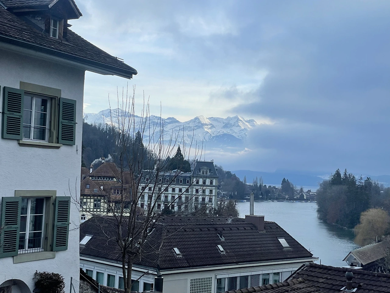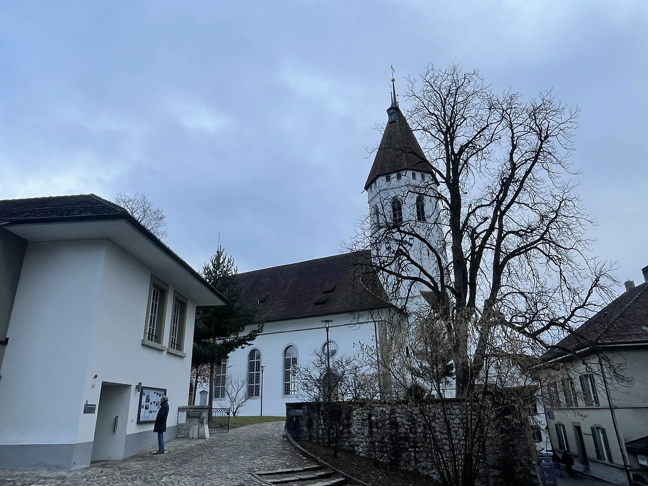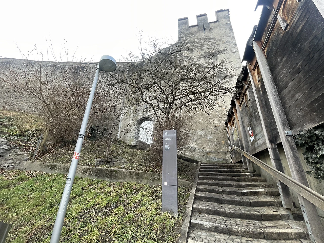 그리고 조금 더 올라가니 성이 보여요. 성 안이 박물관으로 되어 있어 내부를 구경하려면 박물관이 열 때 와야 하는데 안타깝게도 일요일 1시에서 4시에만 열린다고 해요. 내부는 못 보고 성을 지나 걷다 보니 교회가 보여요. 교회의 산책로를 따라 걷는데 역시 이 곳도 전망이 좋아 성도 그리고 강과 알프스 산도 찰칵찰칵! 사진 찍고 싶어지는 곳이었어요.
