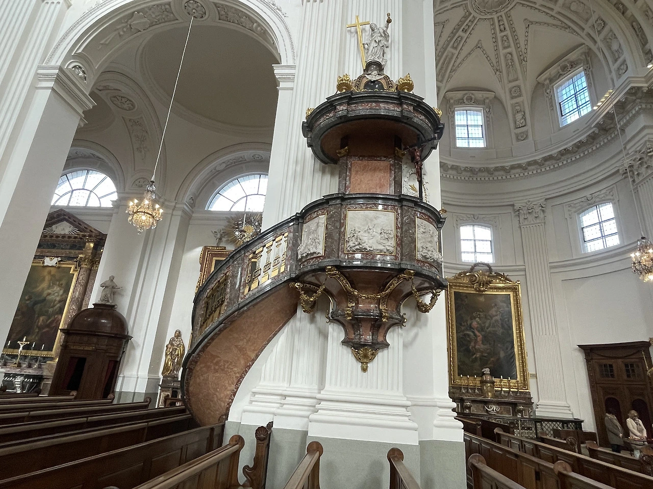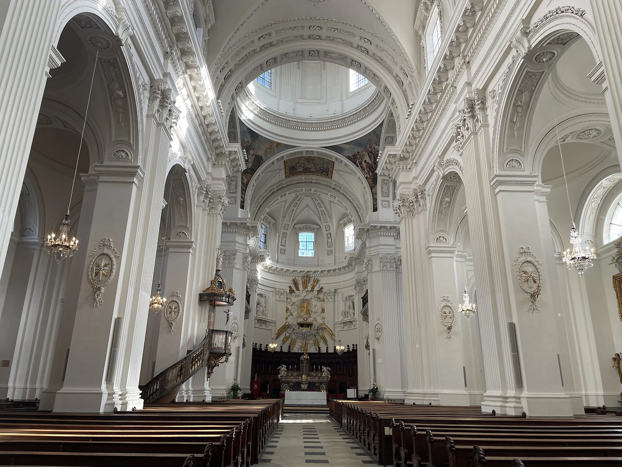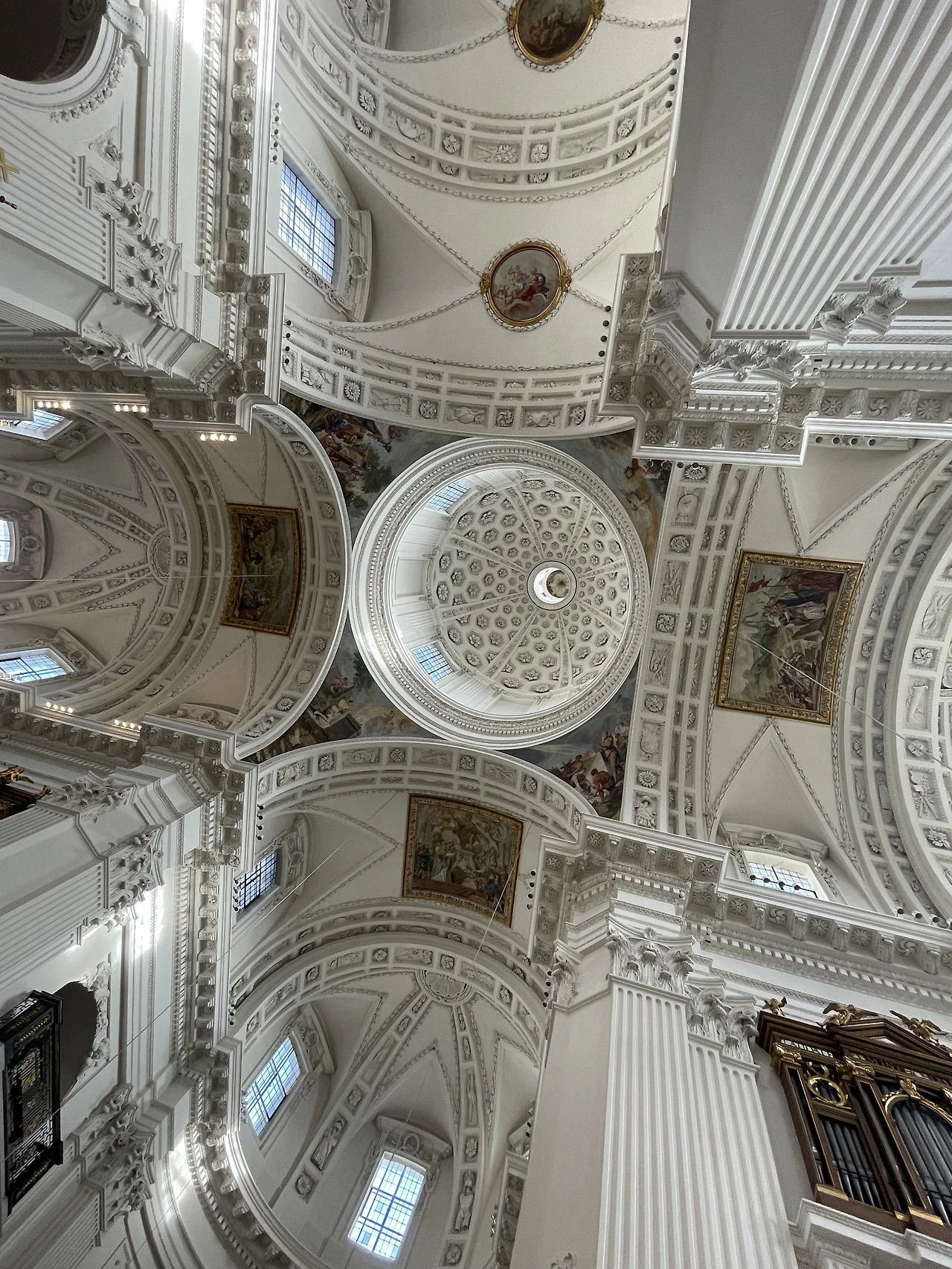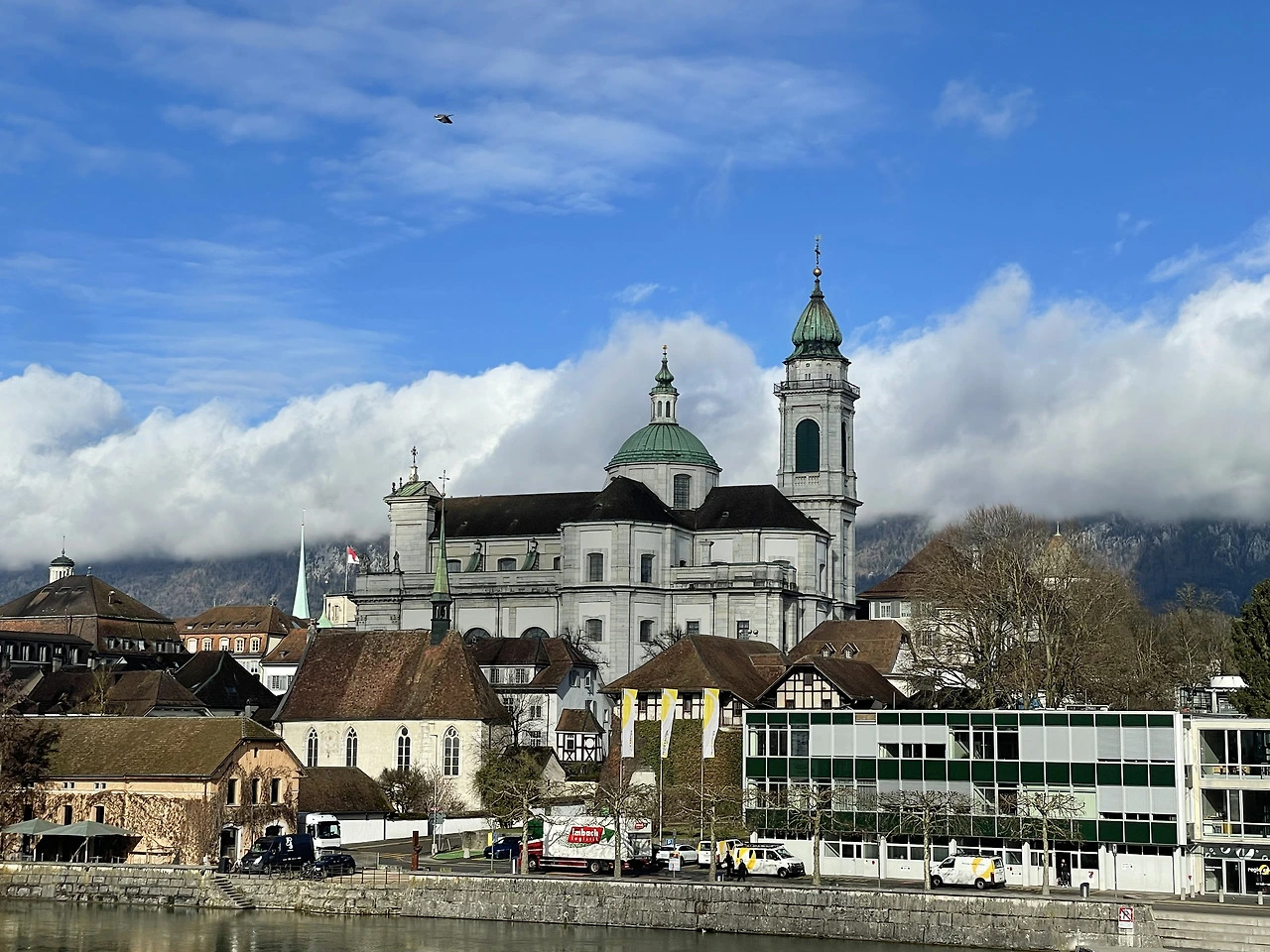 무작정 와서 가볼 만한 곳을 검색하니 성당(성 우르수스 대성당)이 나와요. 구글맵을 켜서 찾아가 보았는데 상상 그 이상이더라고요. 이렇게 멋진 성당이 있었나 감탄하며 성당 안을 세 바퀴를 돌았어요. 구글에서 정보를 찾아보니 스위스에서 가장 중요한 초기 신고전주의 건축물로 손꼽히며 1762년에서 1773년까지 지어졌다고 해요.