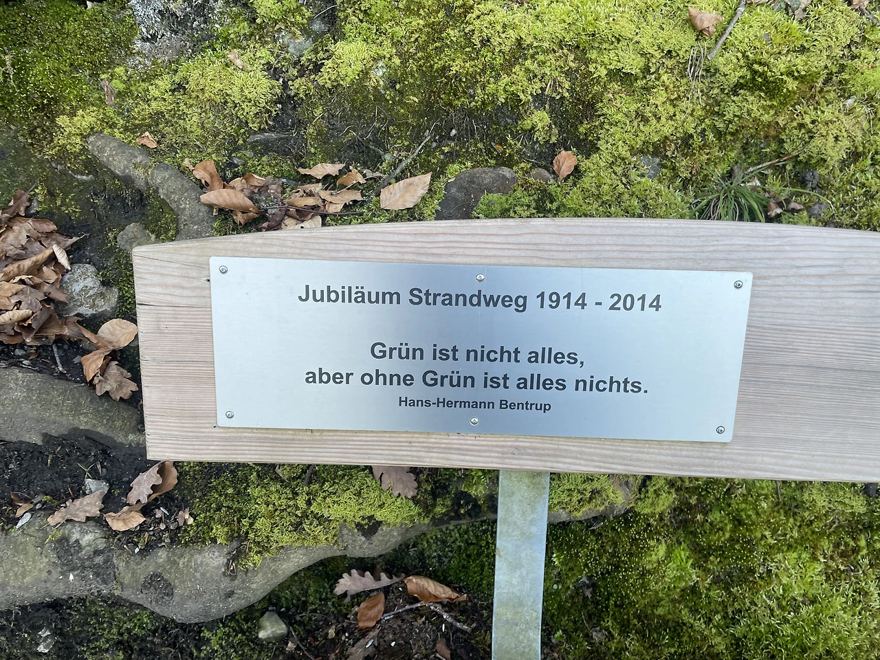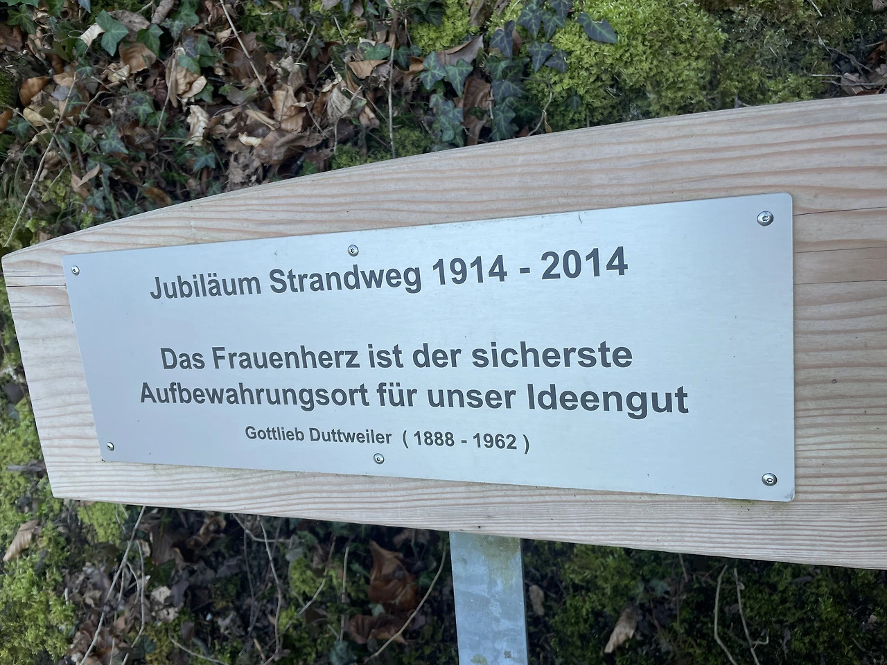 한 시간쯤 걸었을까요? 이제 동그라미를 따라가면 산으로 올라가야 할 것 같은데 시간이 그렇게 넉넉하지 않아서 왔던 호숫길을 되짚어가기로 했어요. 가는 산책로마다 의자가 꽤 많이 있었는데 의자마다 명언이 적혀 있었어요. 독일어로 하나하나 읽어보며 의미를 되새겼어요. 모르는 단어들은 구글로 찾아보고요. (왼쪽 의자) 녹색이 전부는 아니지만 녹색이 없다면 모든 것은 아무것도 아니다/ (오른쪽 의자) 여성의 마음은 우리의 생각을 보관하기에 가장 안전한 곳이다.