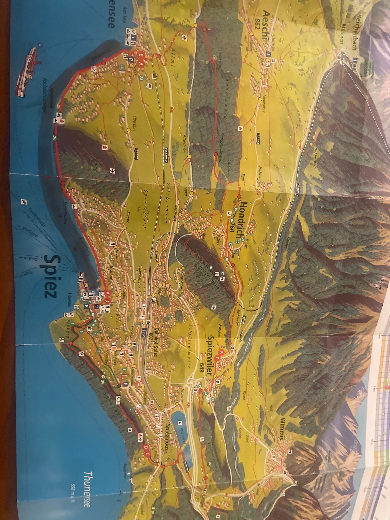 역시 오늘도 혼자 왔어요. 아침 일찍 영어 수업 듣고 떠나는 길 아쉽게도 핸드폰 배터리가 또 간당간당이에요. 저번처럼 SBB사무실에 들러 종이 기차 티켓을 받기로 하고 슈피츠로 떠났죠. 슈피츠에 도착해서 어디를 가야 하나 검색해 보니 바로 Rundwanderweg 이렇게 나오네요. 요새 배우고 있는 독일어를 떠올려 보면 직역해서 동그란 산책길! 아마 크게 돌아 제자리로 오는 길 같았어요. (때로는 독일어 배운 것이 참 유용해요.) 그래서 산책길을 구글에 찾았더니 호수 근처로 안내하네요. 조금 떨어진 곳에 툰 호수가 보여요.